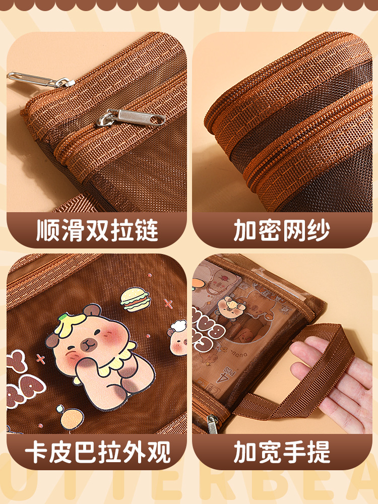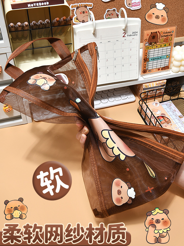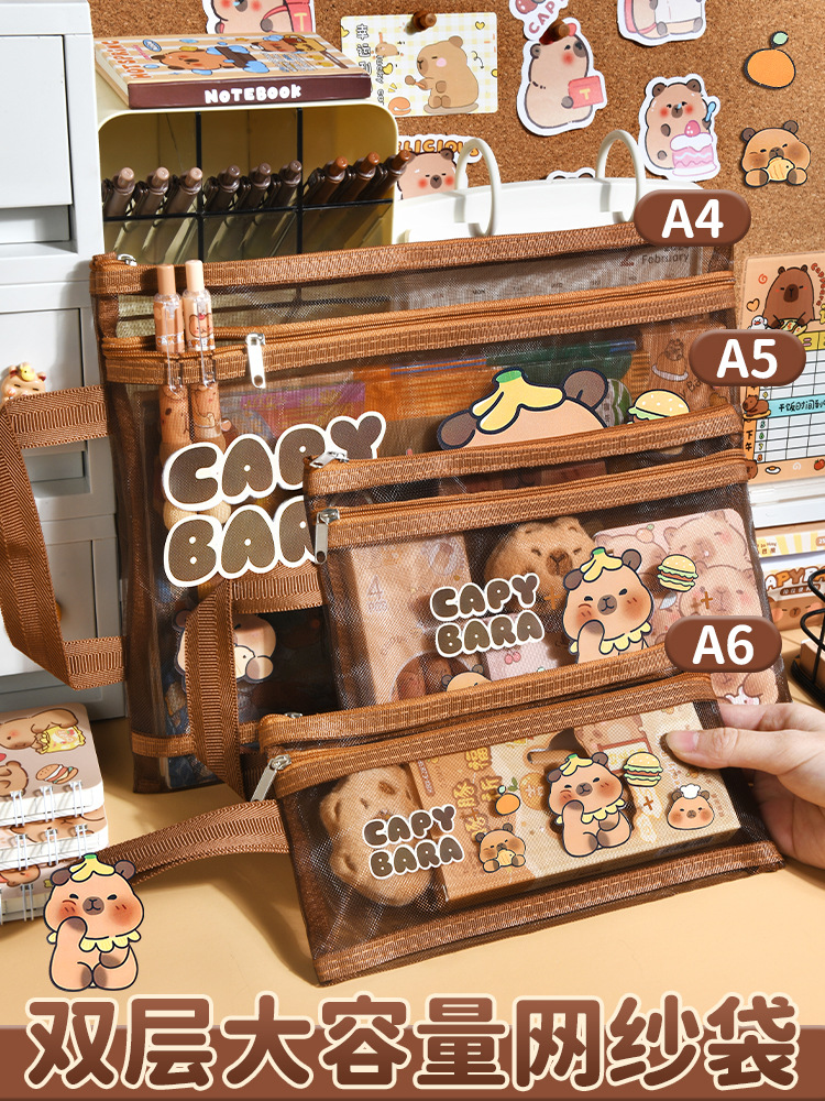 Kappi Bala A4 더블 레이어 투명 메쉬 파일 가방 대용량 초등학생 특별 정보 테스트 종이 보관 가방스토어 가기