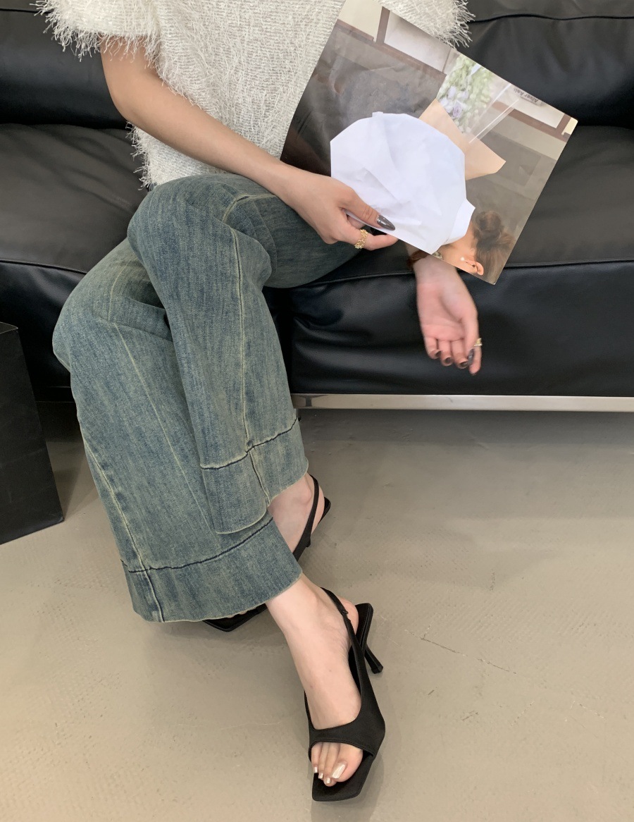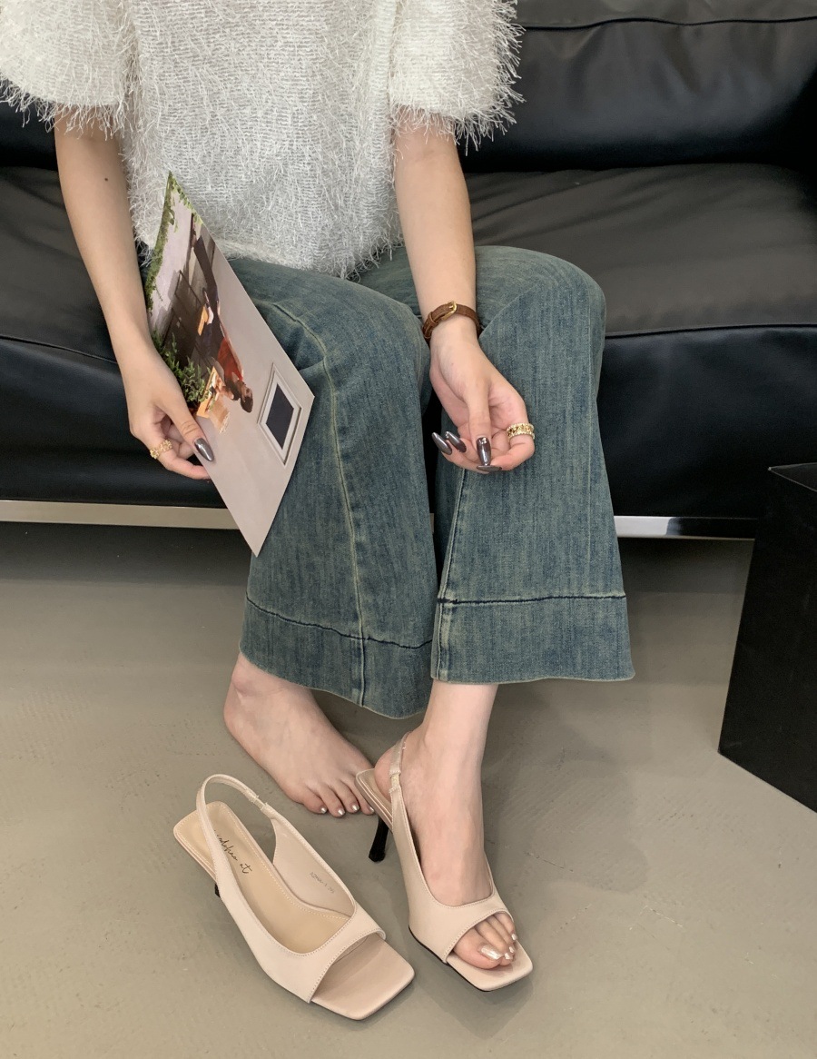유럽과 미국 스타일의 심플하고 고급스러운 2025년 여름 신상 스퀘어 토 오픈 토 스틸레토 힐 뒷면 버클 하이힐 샌들