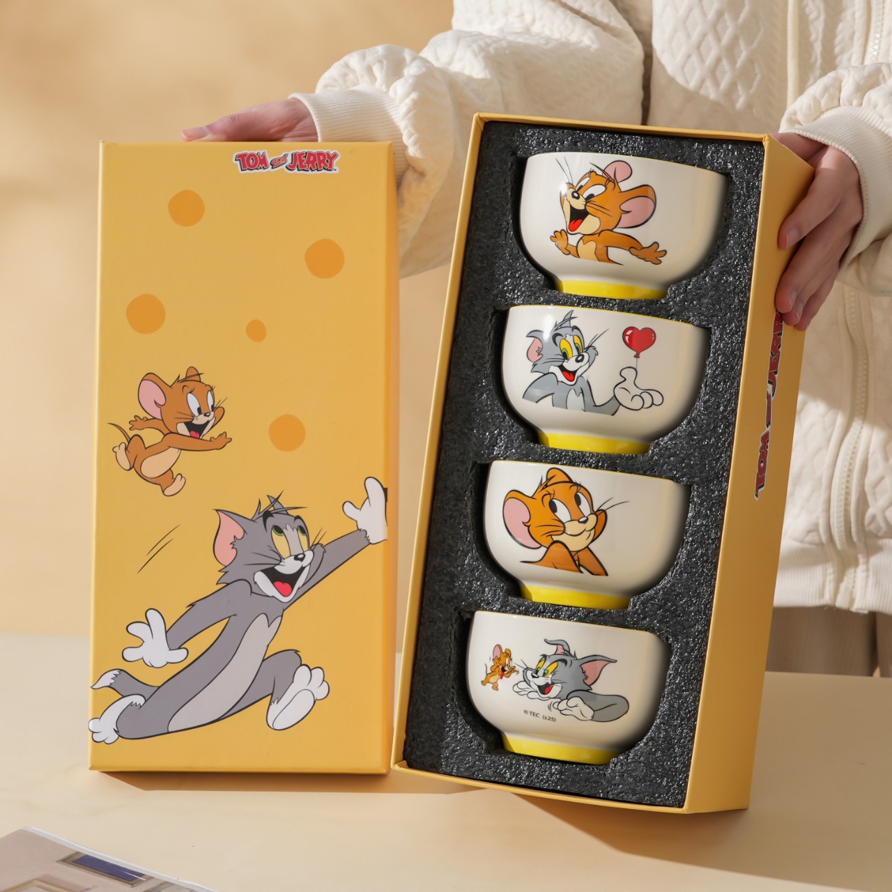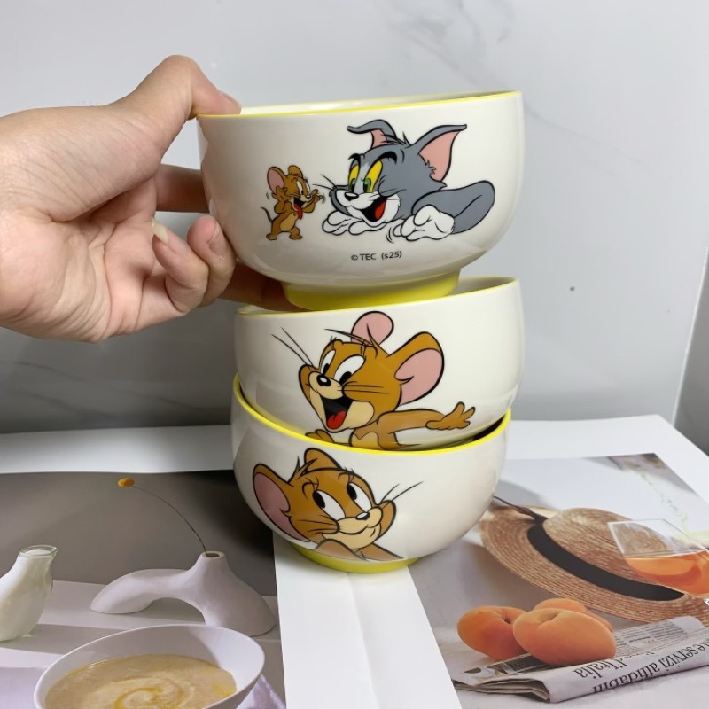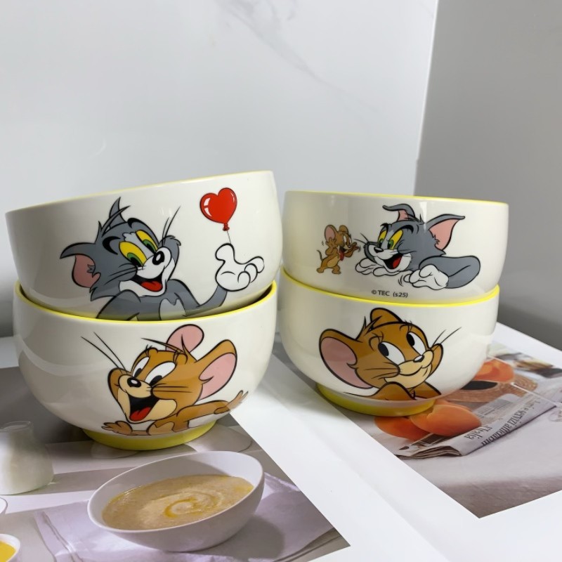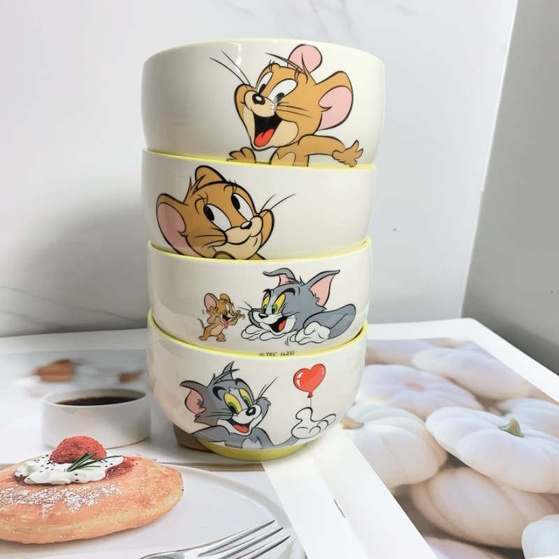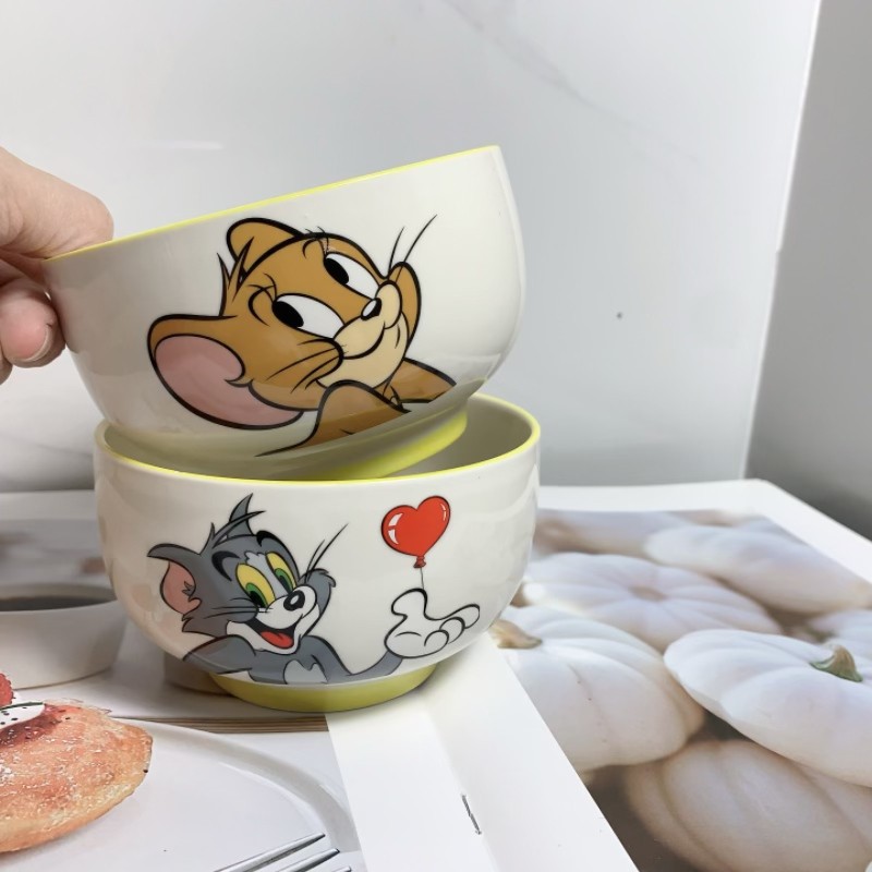 고양이와 마우스 세라믹 그릇 선물 상자 높은 색상 가치 쌀 그릇 높은 온도 저항하는 가정용 세트 쌀 그릇 선물 상자 손 선물스토어 가기