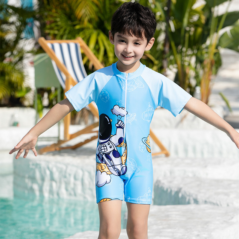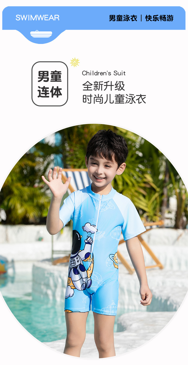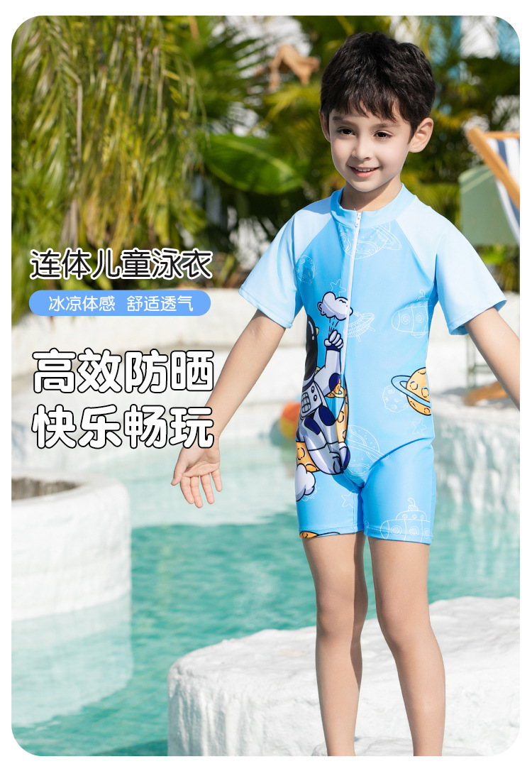 중소형 어린이를 위한 크로스보더 우주비행사 남아 수영복, 남아용 원피스 자외선 차단 반팔 아동 수영복스토어 가기
