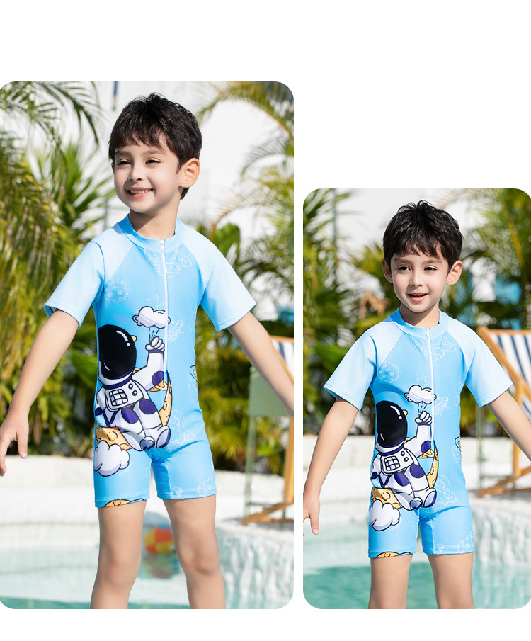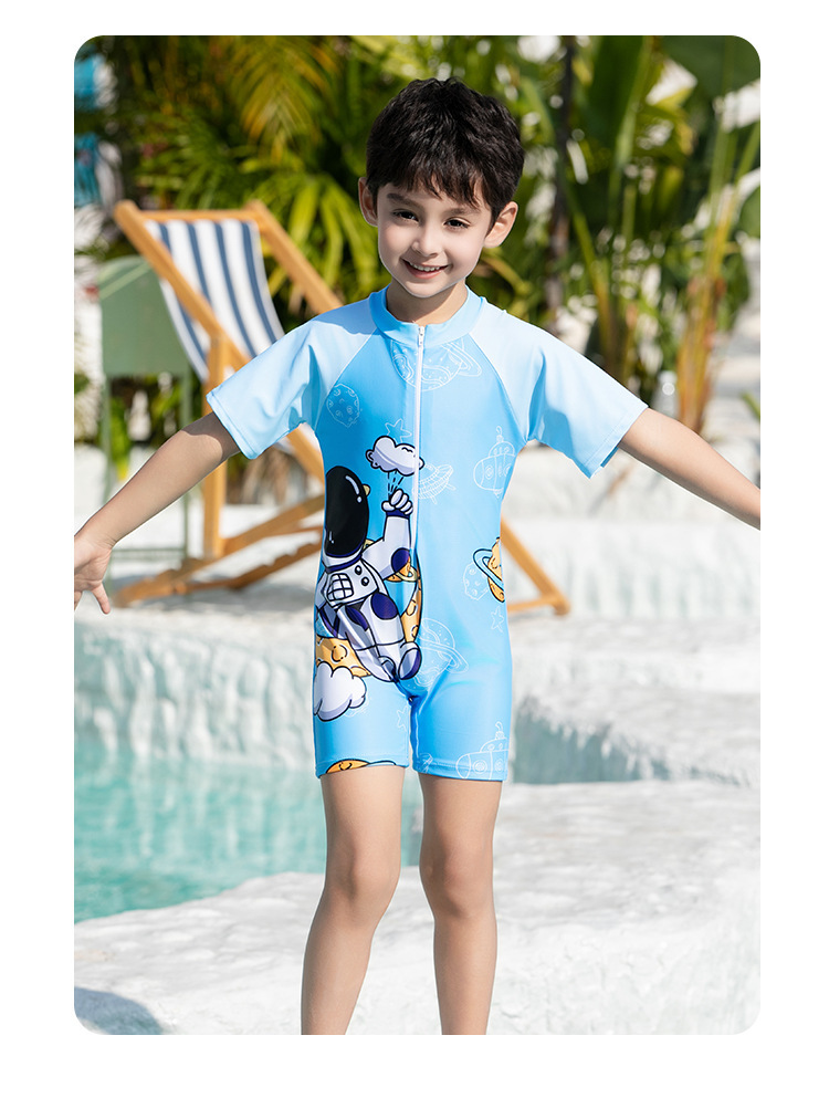 중소형 어린이를 위한 크로스보더 우주비행사 남아 수영복, 남아용 원피스 자외선 차단 반팔 아동 수영복