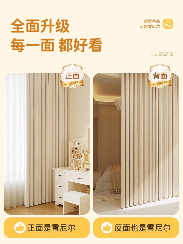 새로운 양면 동일 색상 셔닐 두꺼운 완전 암막 커튼 침실 하이 엔드 라이트 럭셔리 현대 미니멀리스트 거실