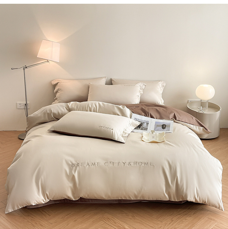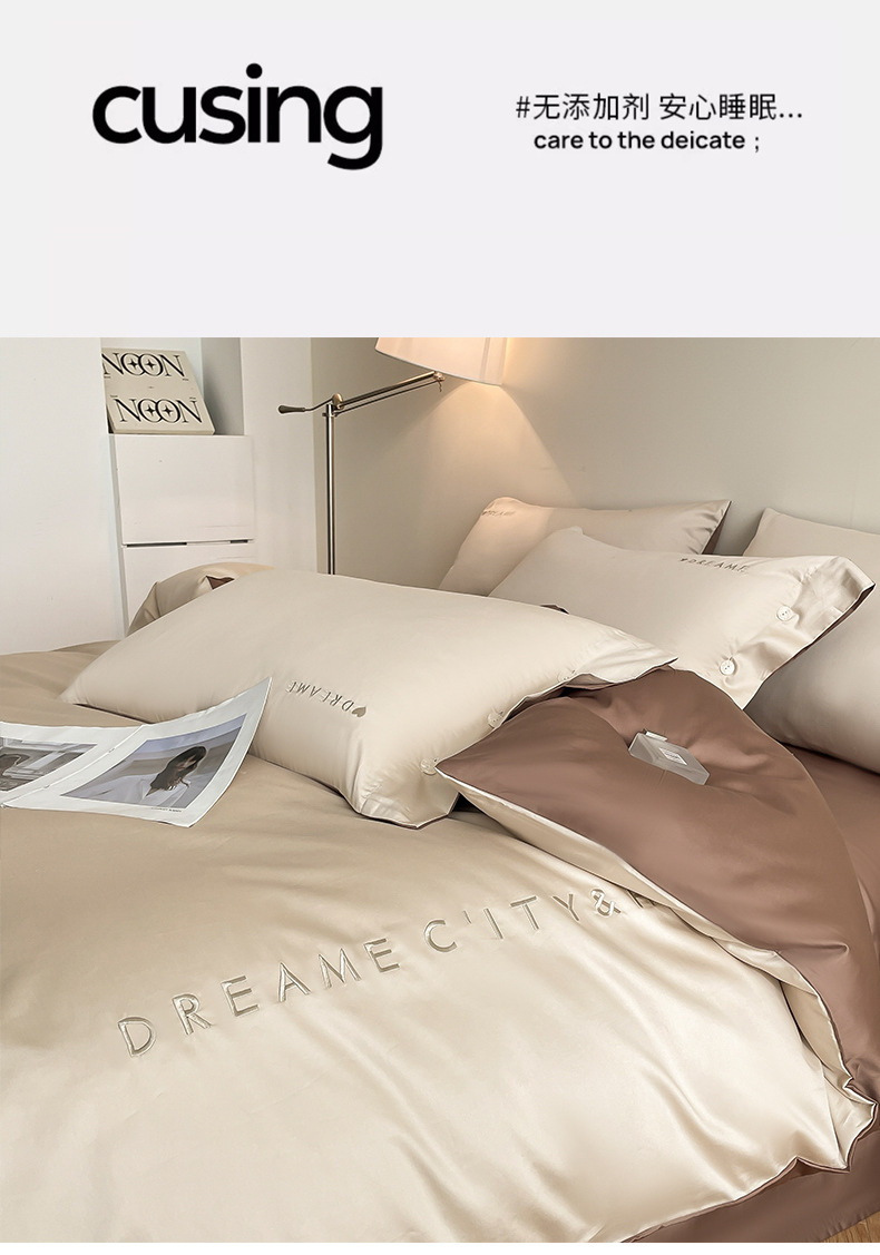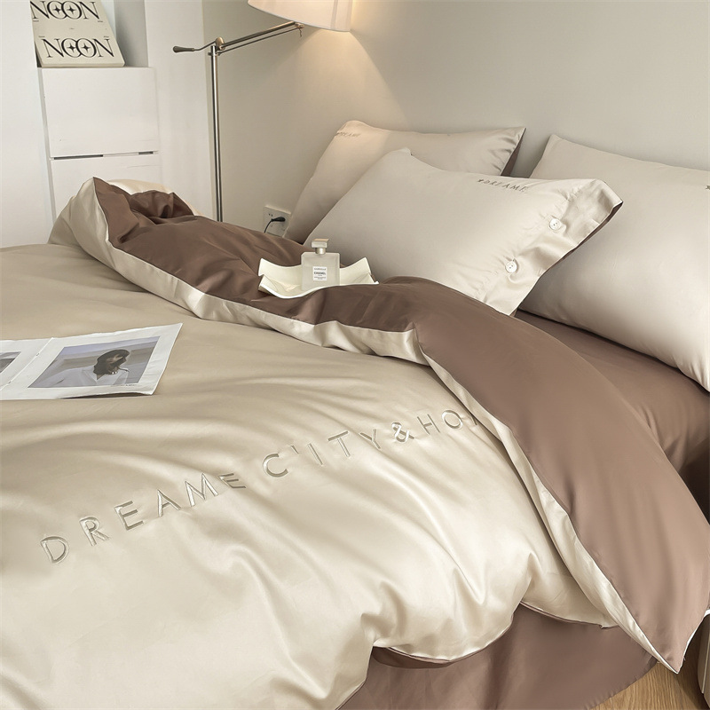 가벼운 고급 120수 장단면 4피스 순면 침대 시트와 이불 커버 고급 침구 Nantong Home Textiles 4스토어 가기