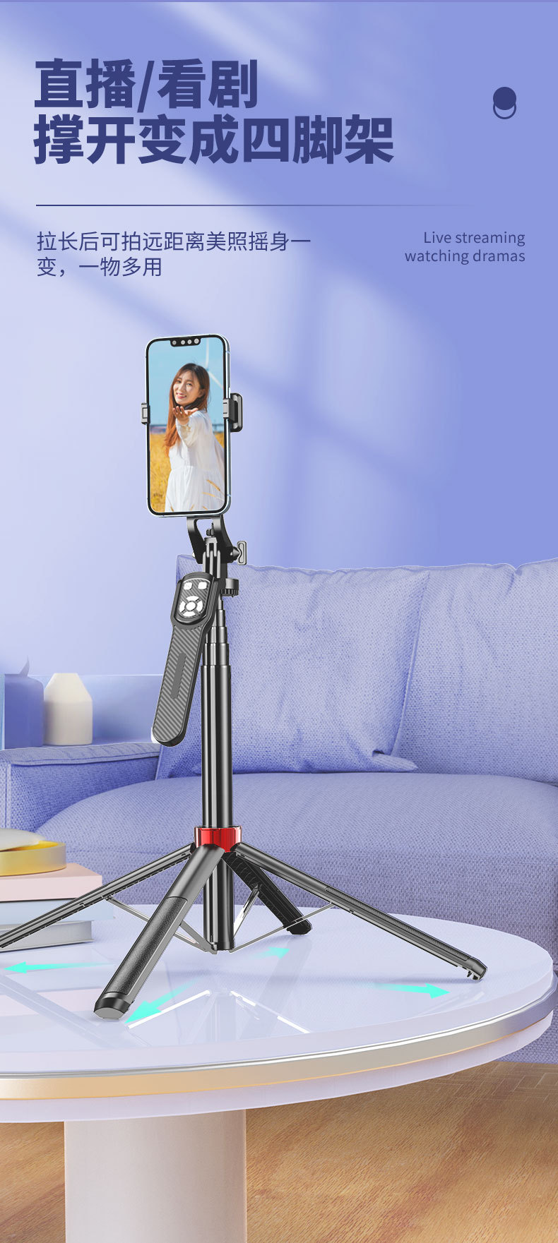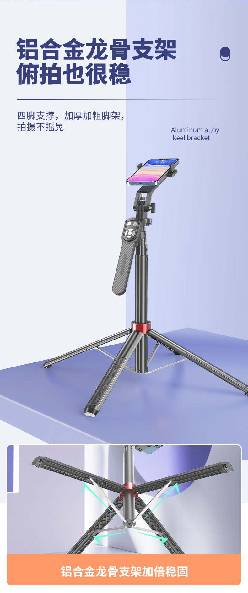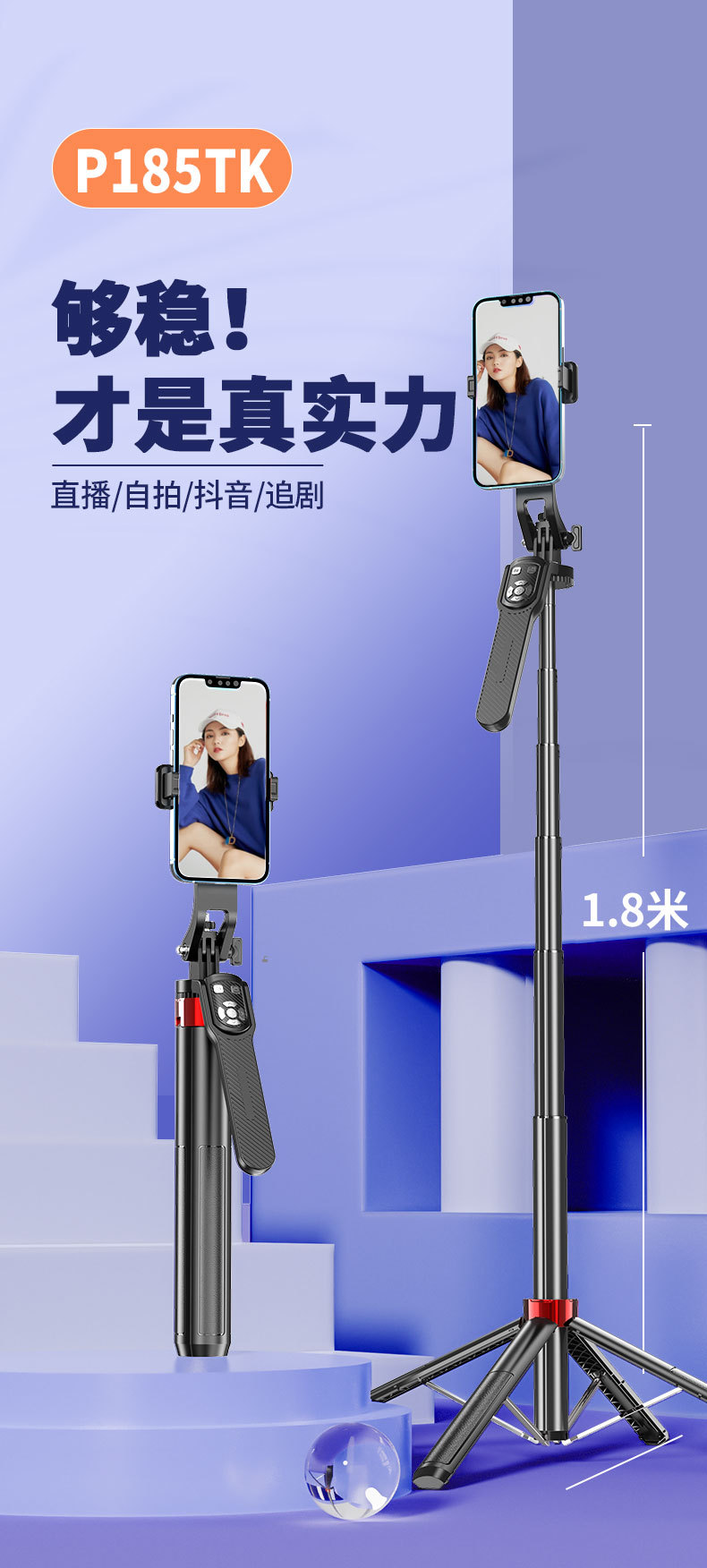 P185TK 알루미늄 합금 사각대 범용 블루투스 셀카 스틱 휴대 전화 라이브 방송 바닥 스탠드 휴대용 안정기