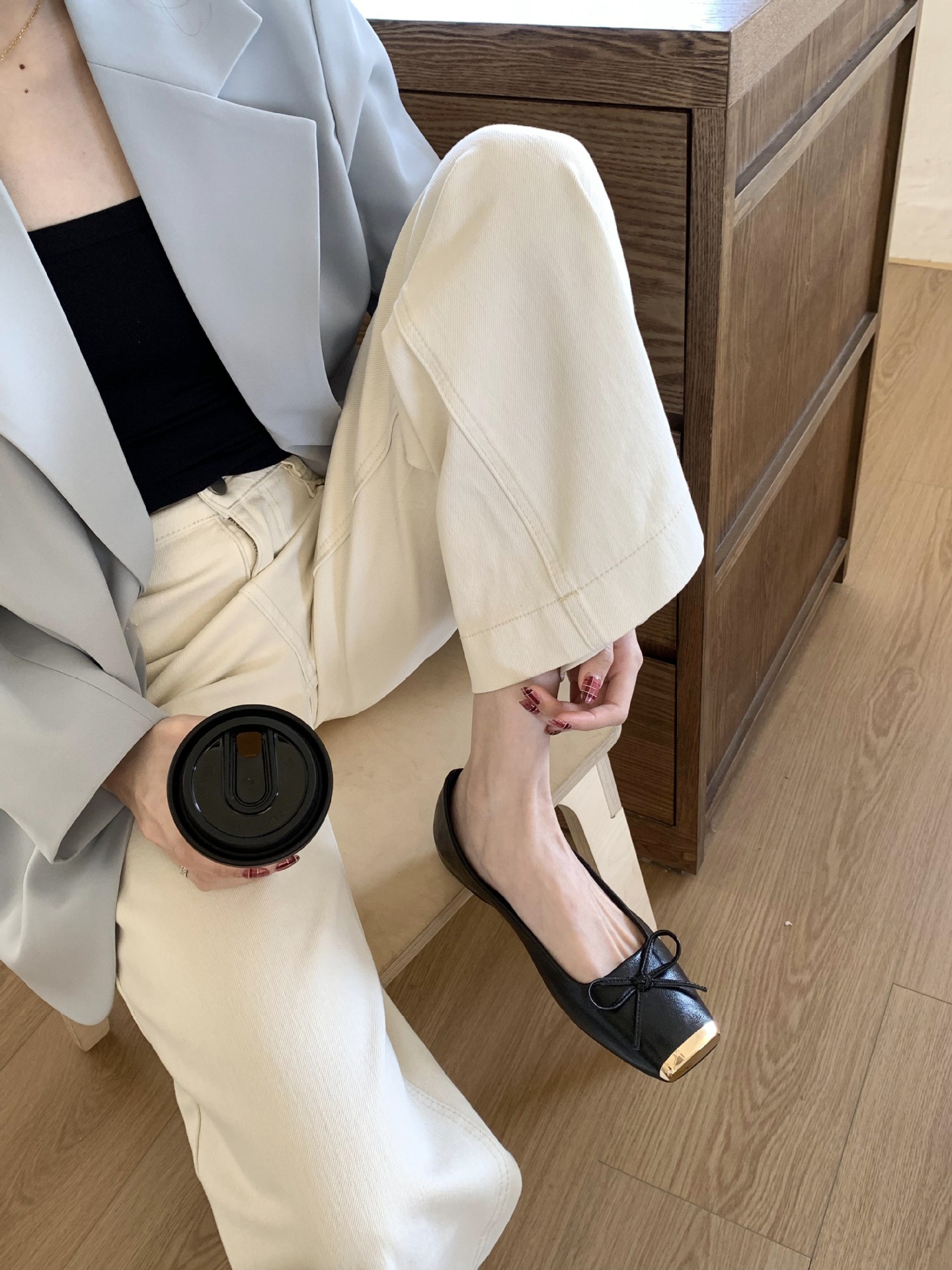 여성을위한 내부 강화 금속 스퀘어 토우 펌프스 신발 2025 봄 새로운 프랑스 스타일 다목적 보우 메리 제인 신발