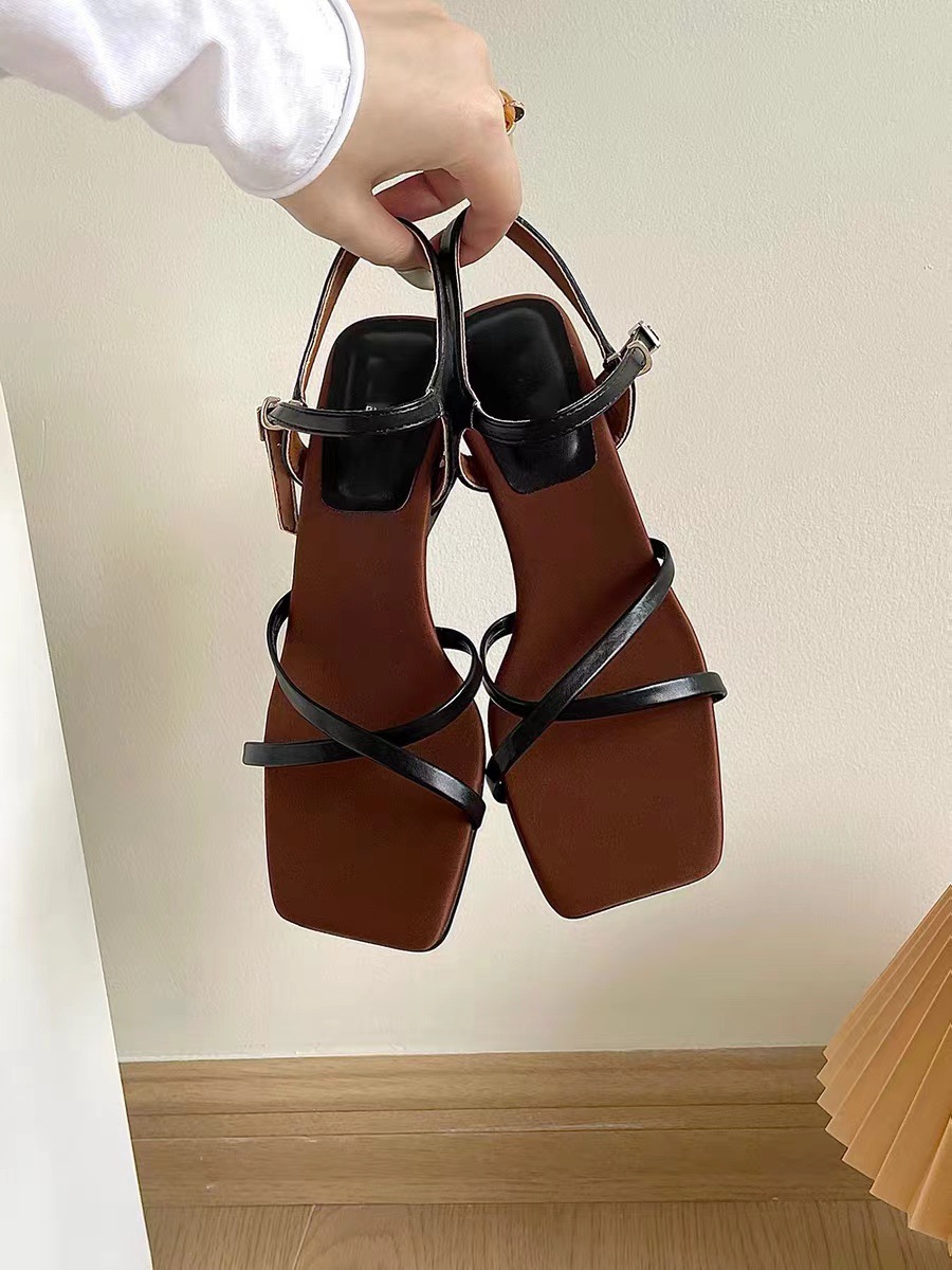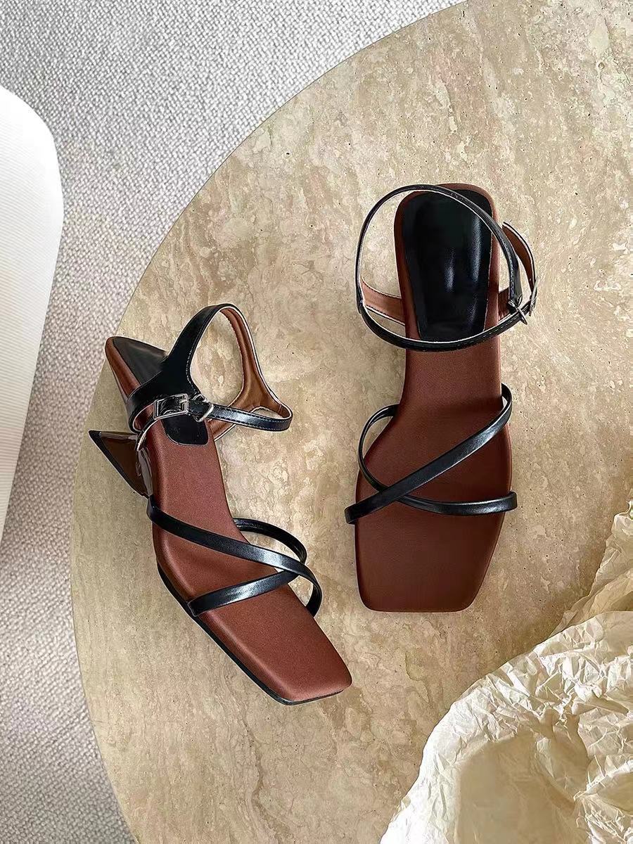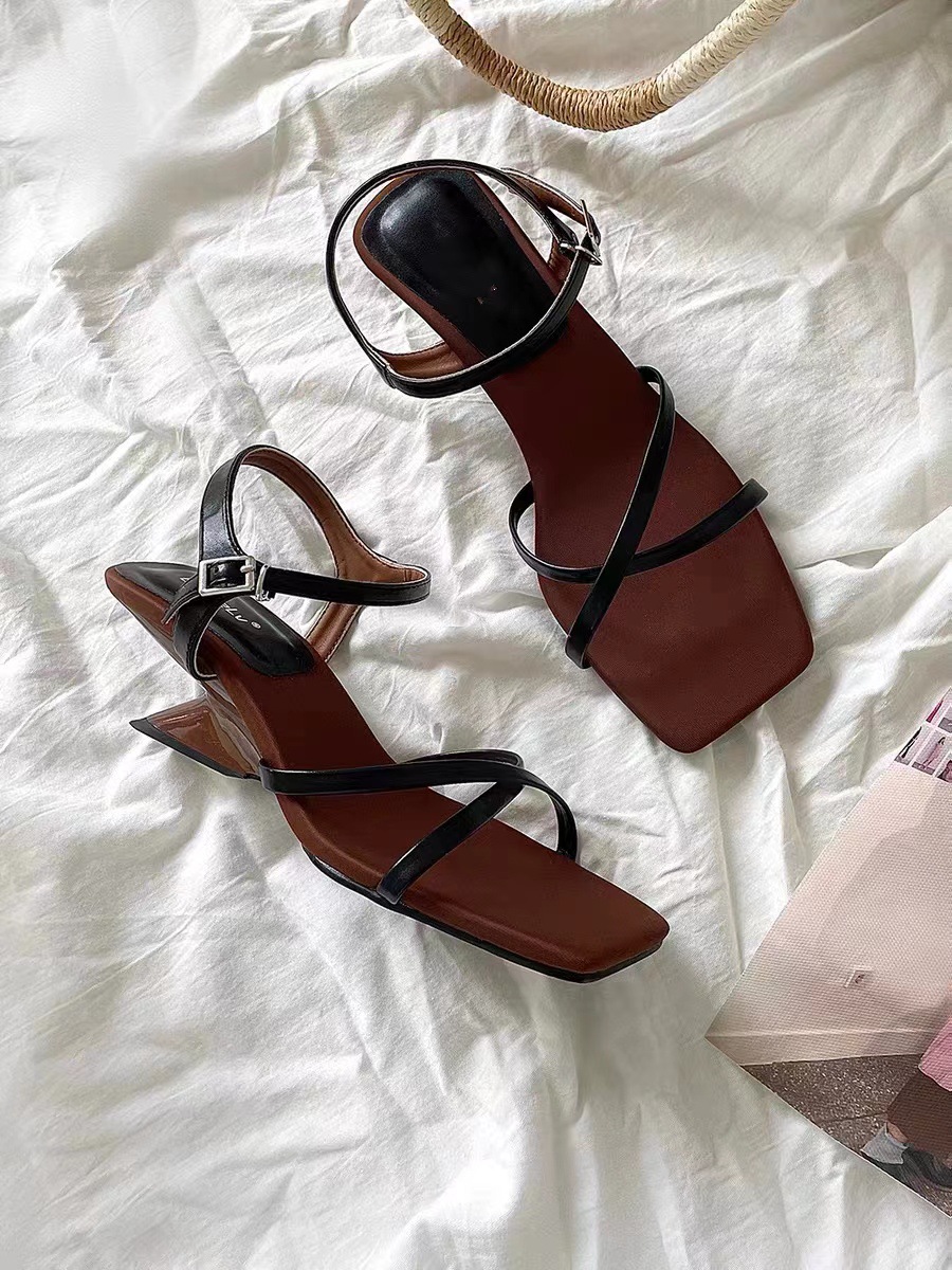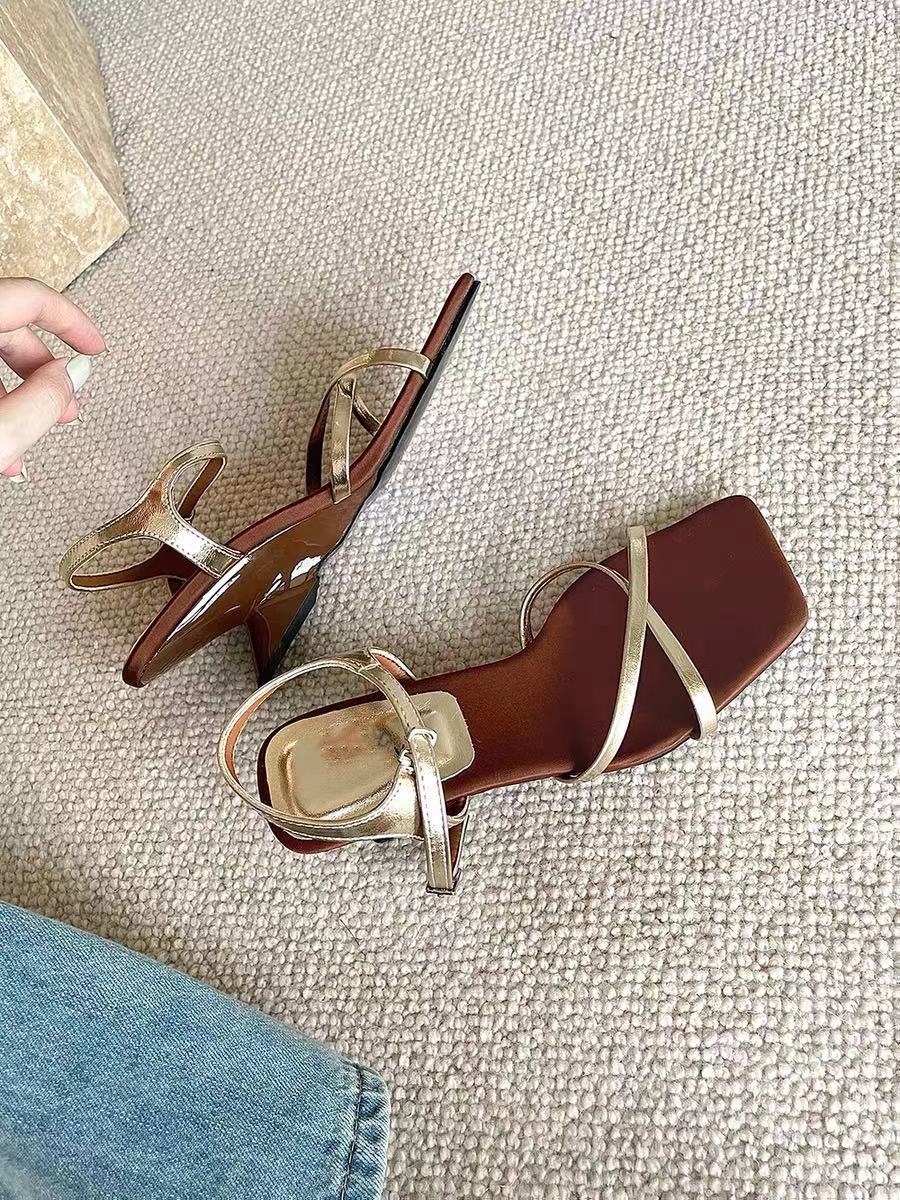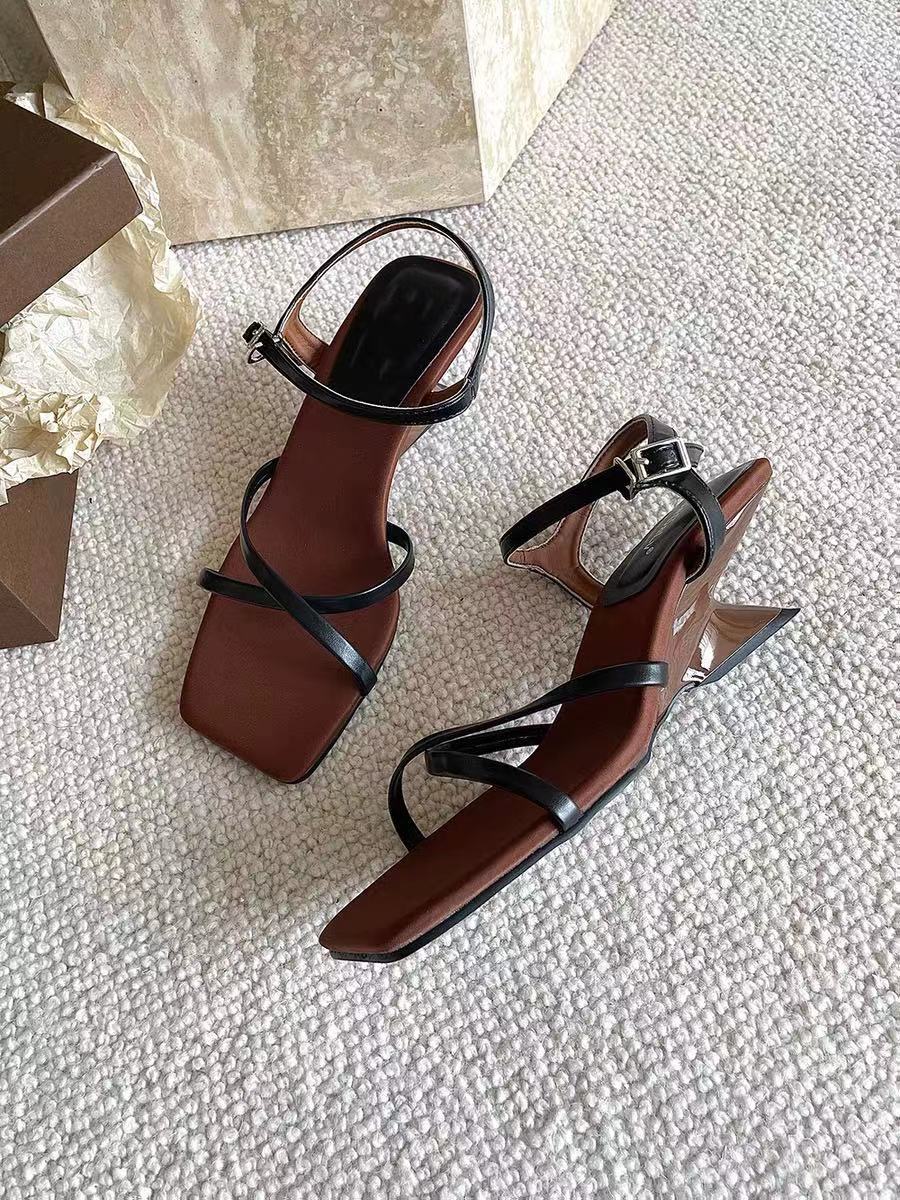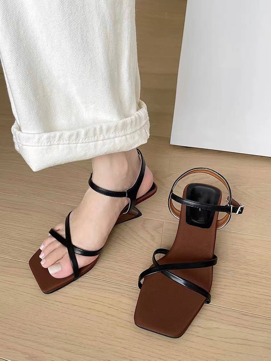 2026. 여름 여성을 위한 새로운 심플 샌들 5cm 특별한 모양의 웨지 샌들 버클 스트랩 휴가 스타일 로마 신발