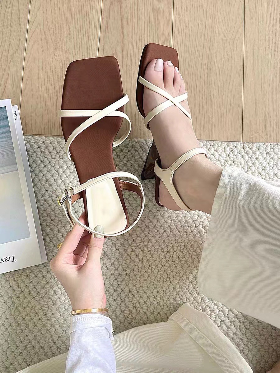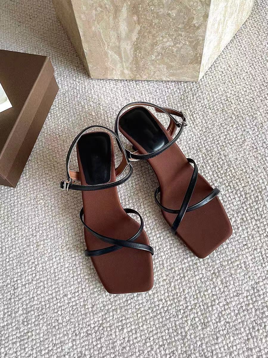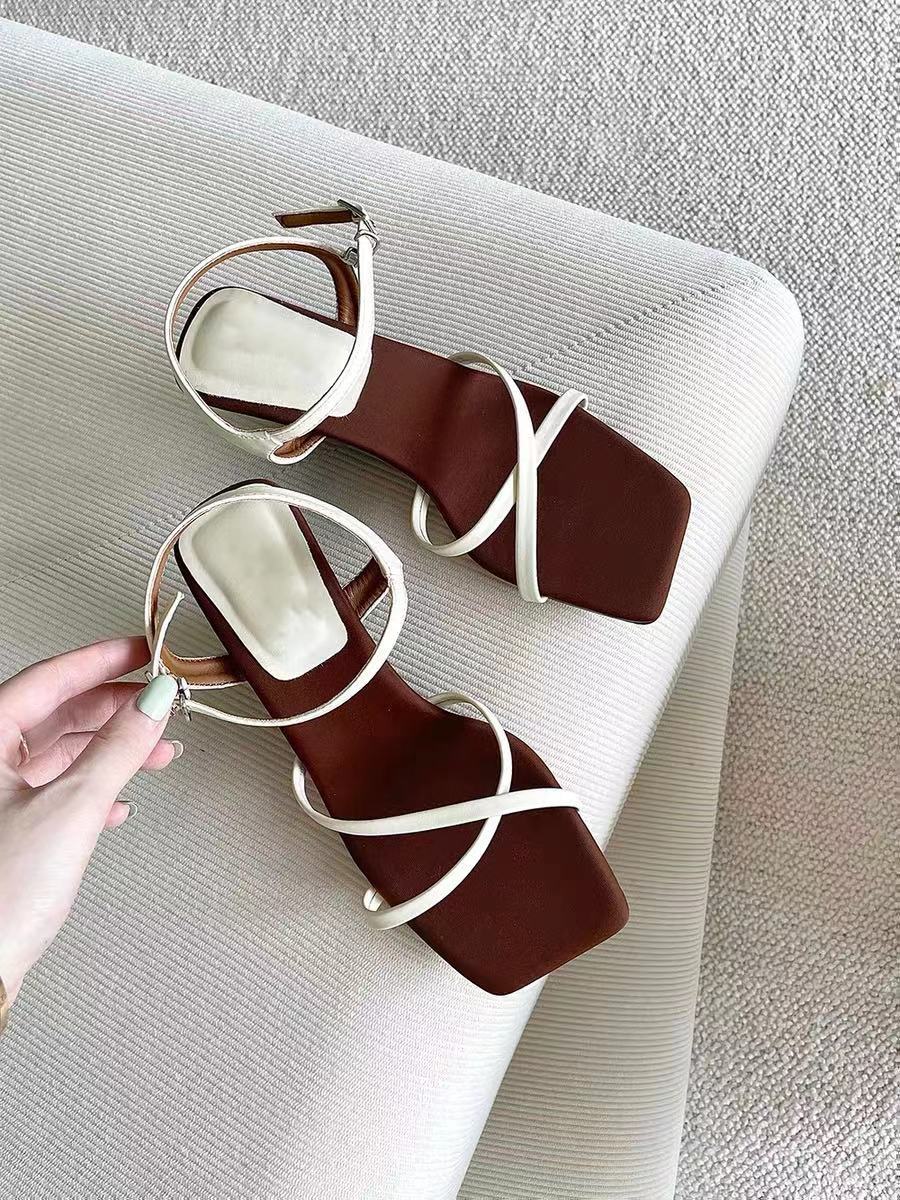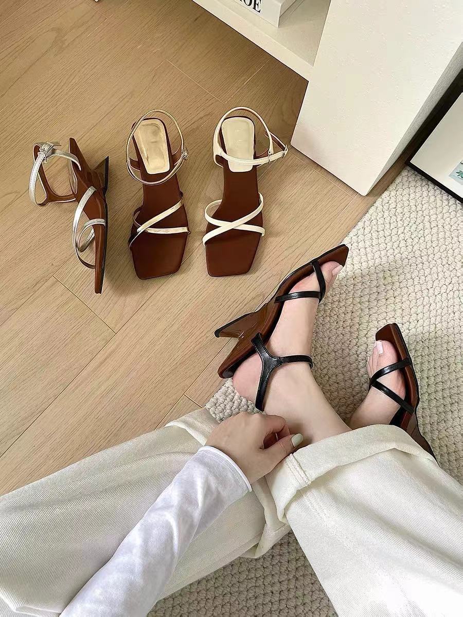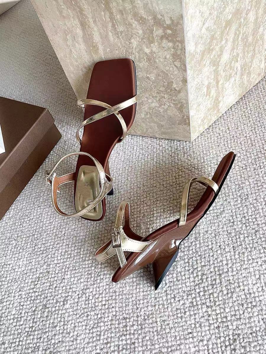 2026. 여름 여성을 위한 새로운 심플 샌들 5cm 특별한 모양의 웨지 샌들 버클 스트랩 휴가 스타일 로마 신발