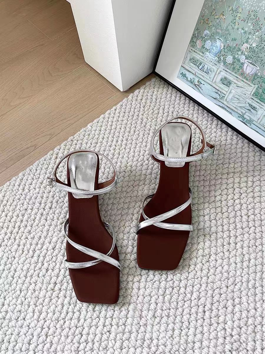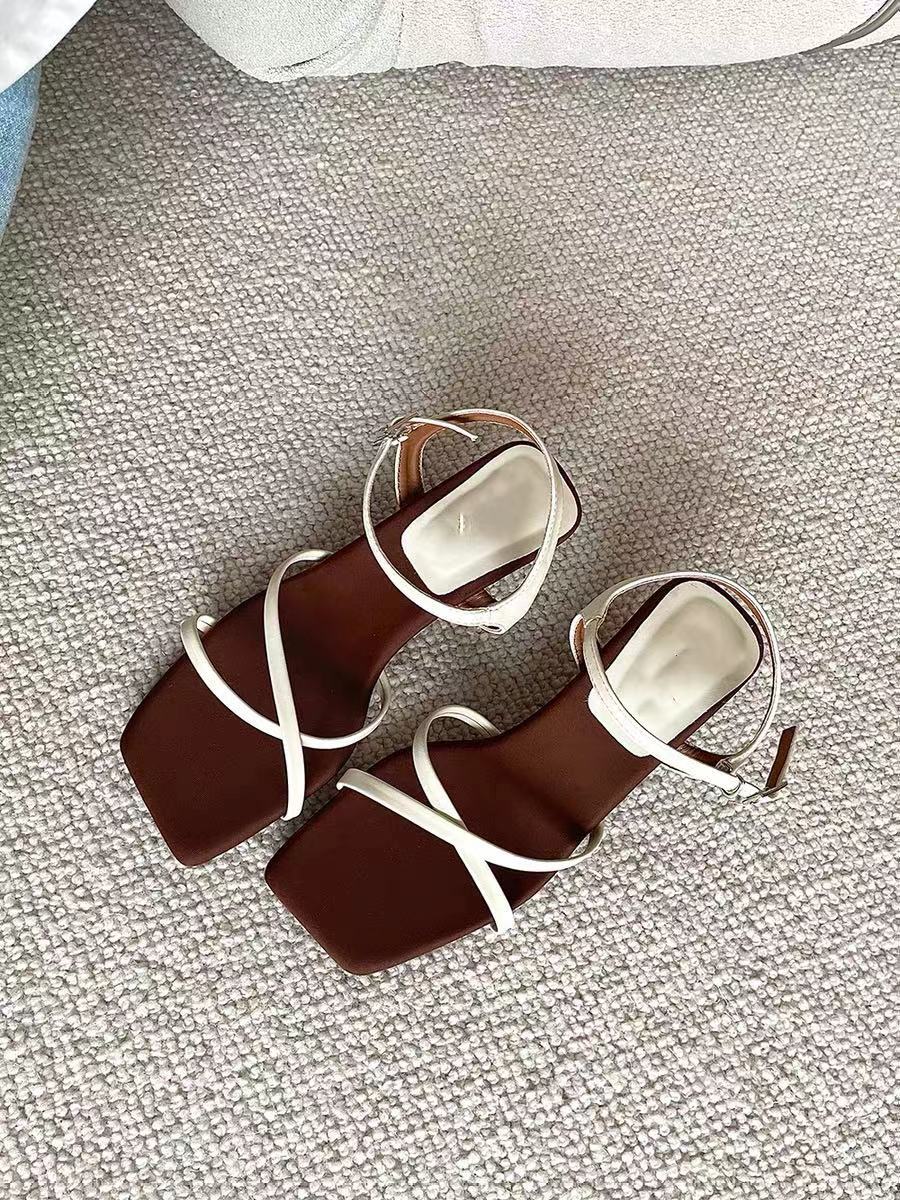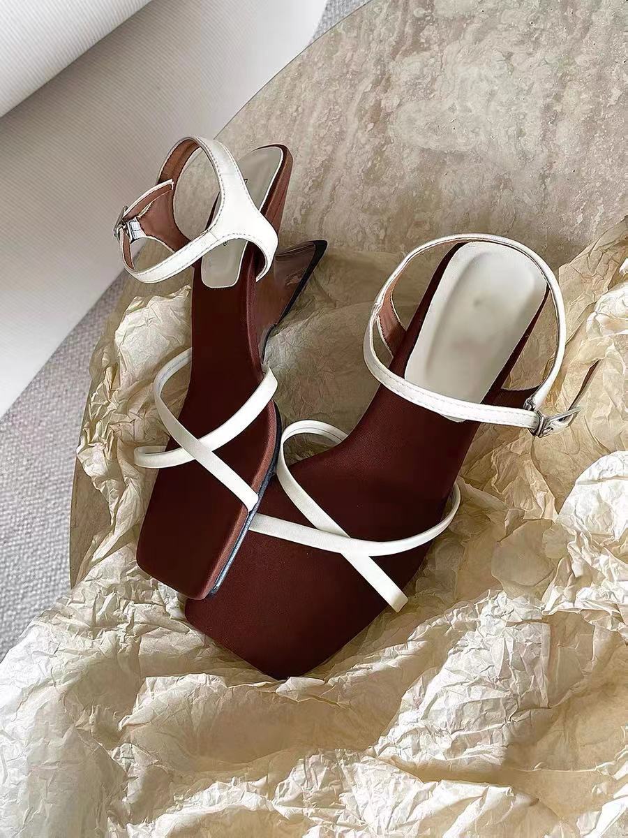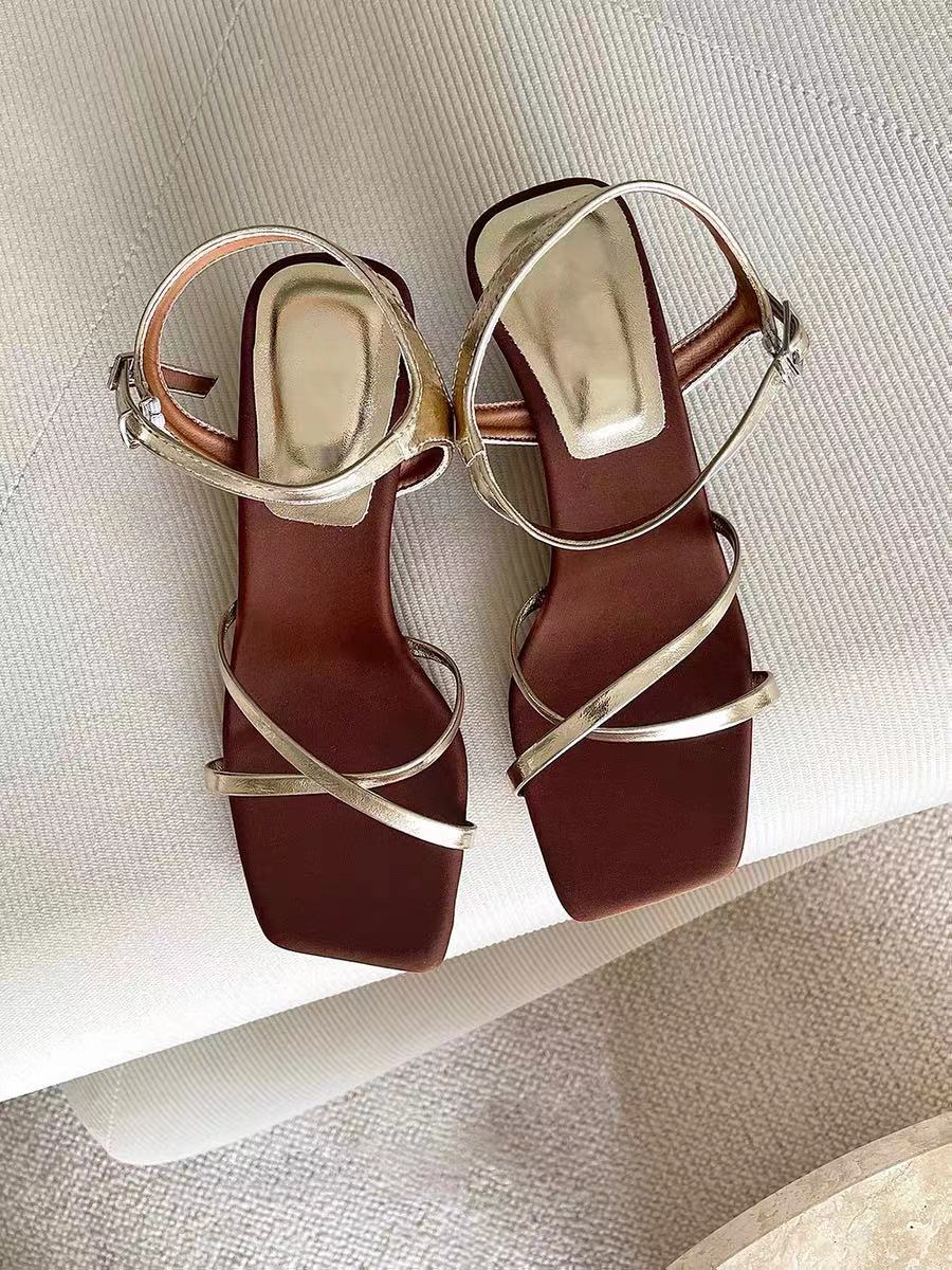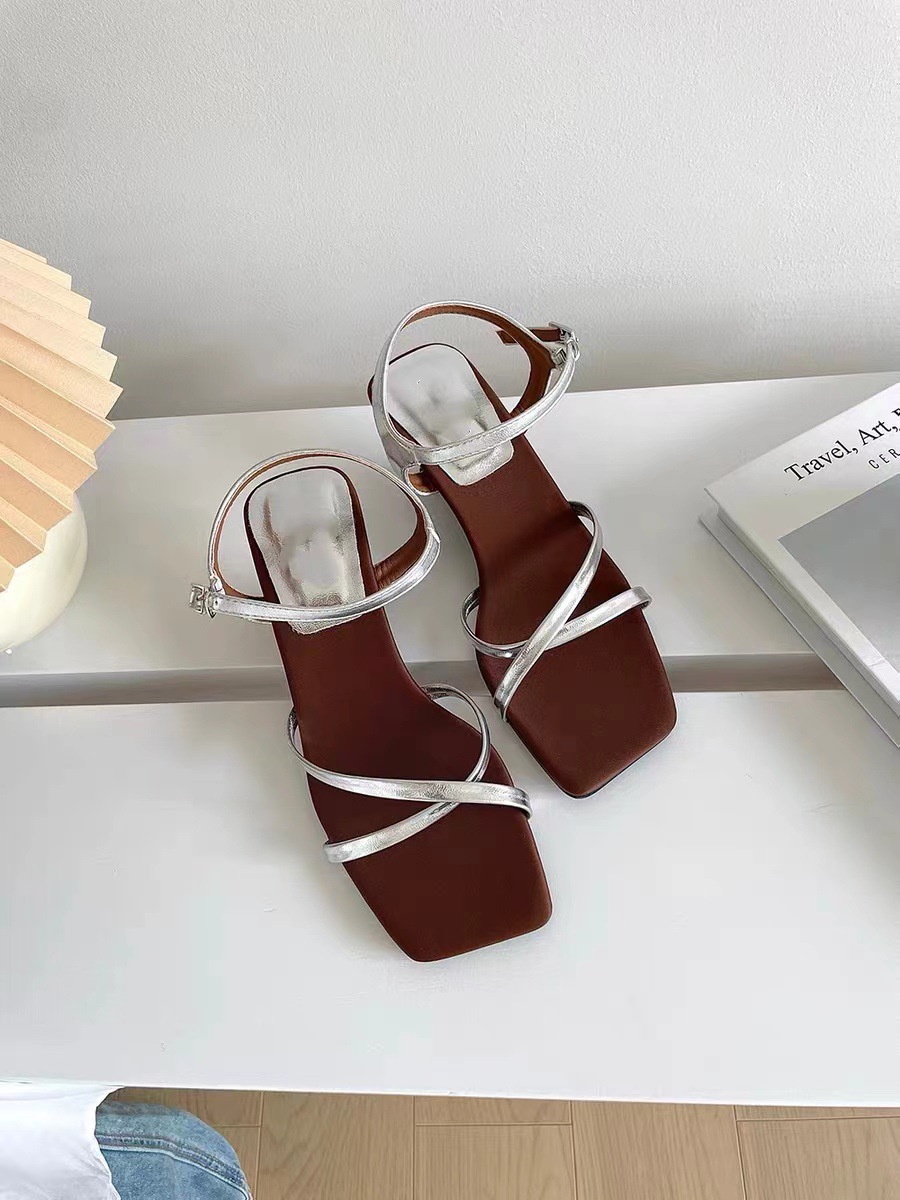 2026. 여름 여성을 위한 새로운 심플 샌들 5cm 특별한 모양의 웨지 샌들 버클 스트랩 휴가 스타일 로마 신발
