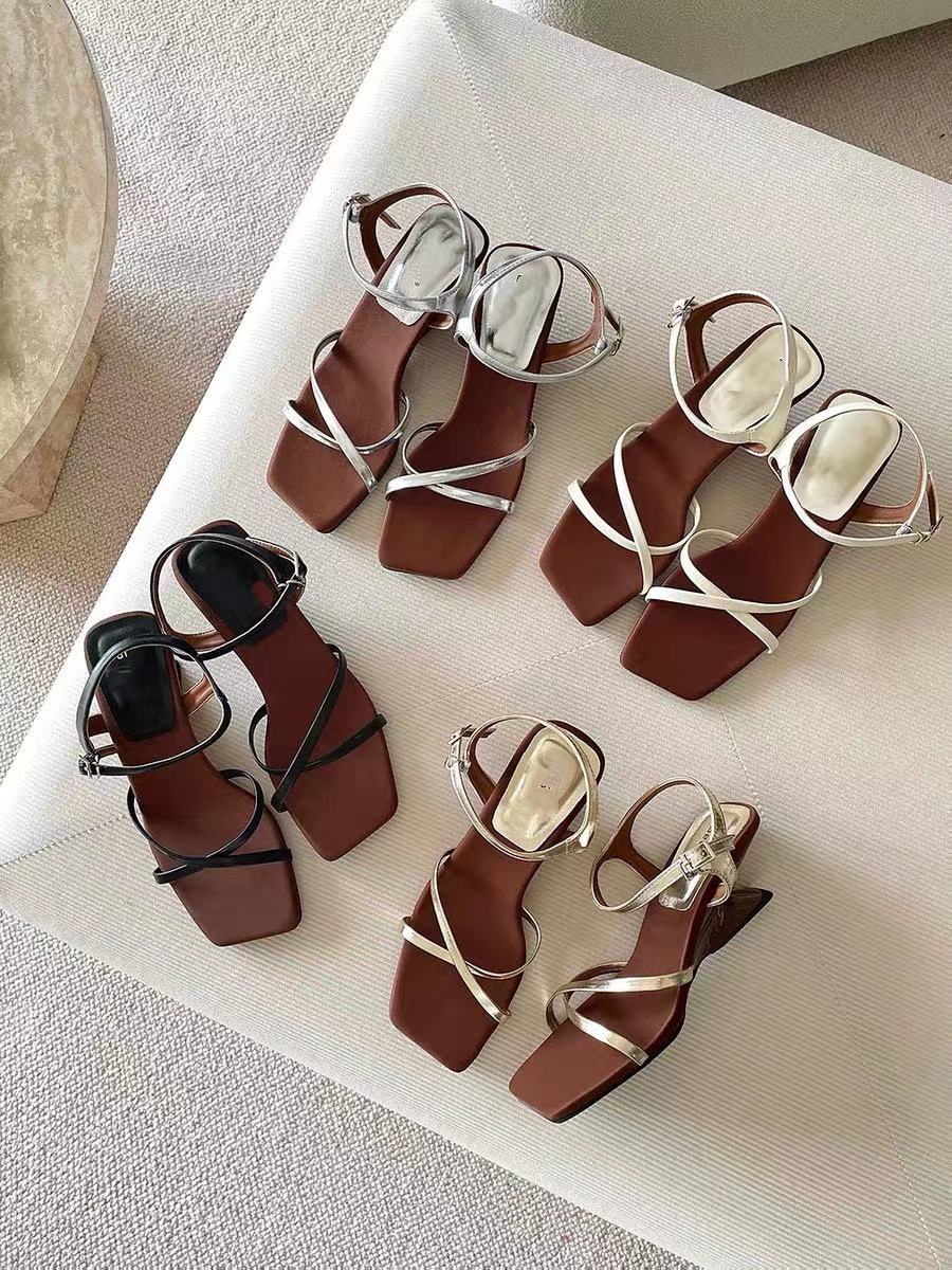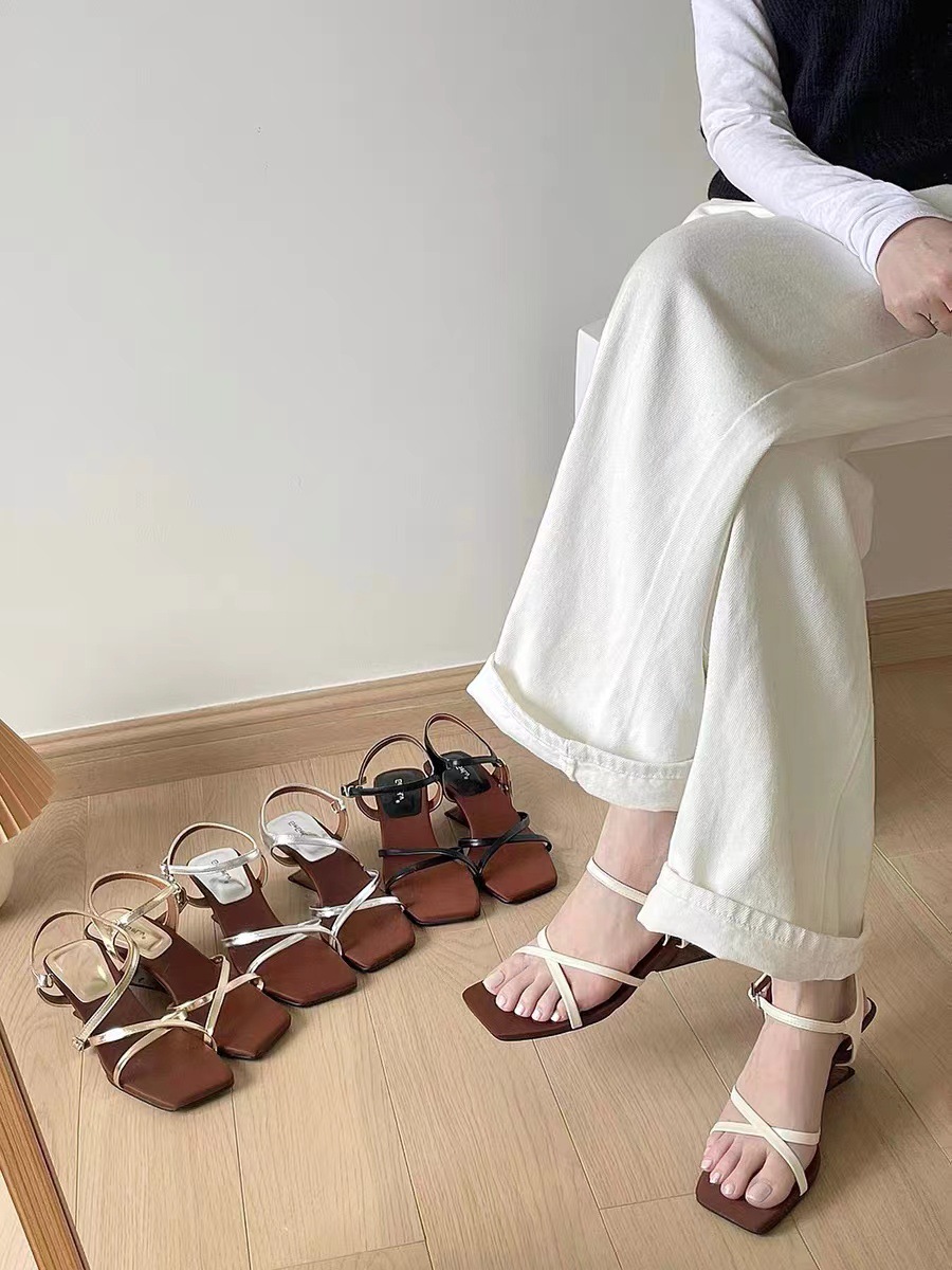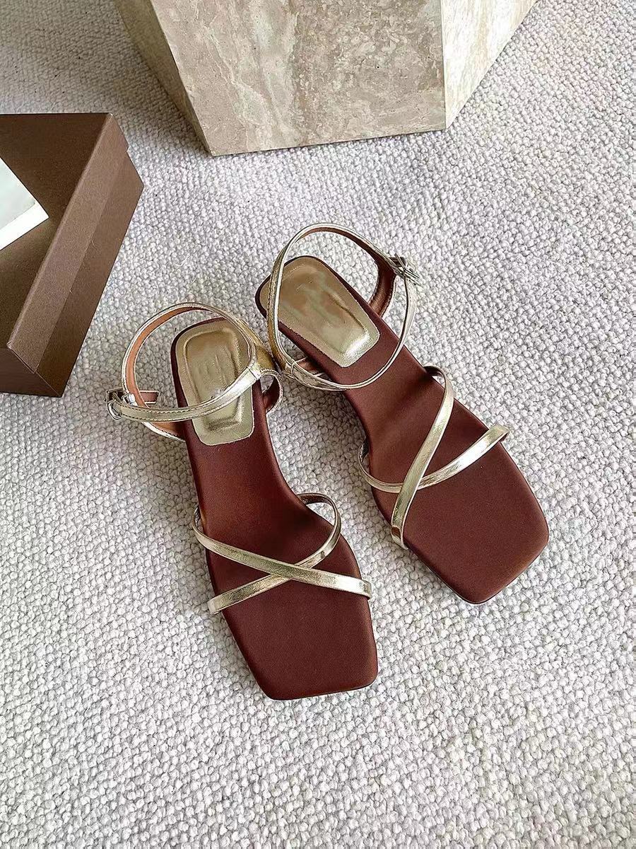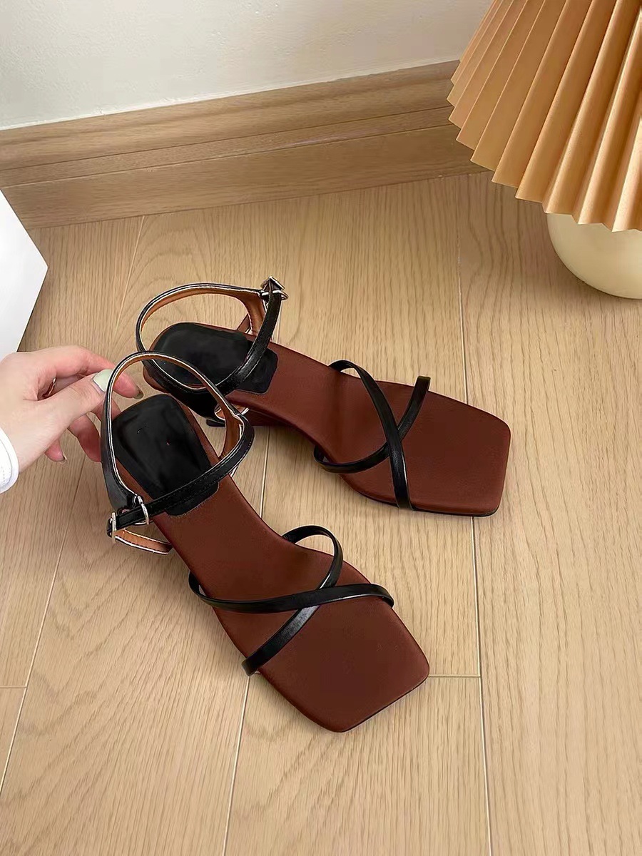 2026. 여름 여성을 위한 새로운 심플 샌들 5cm 특별한 모양의 웨지 샌들 버클 스트랩 휴가 스타일 로마 신발스토어 가기
