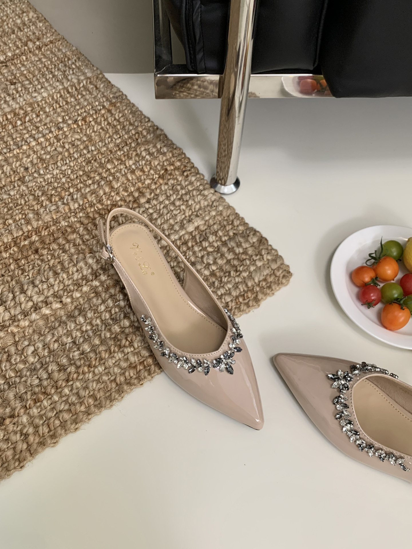 여성을위한 프랑스 사교계 여성의 뾰족한 발가락 라인스톤 발가락 샌들 2025 새로운 스타일 섹시한 기질 뒷면 빈 버클 로마 샌들스토어 가기