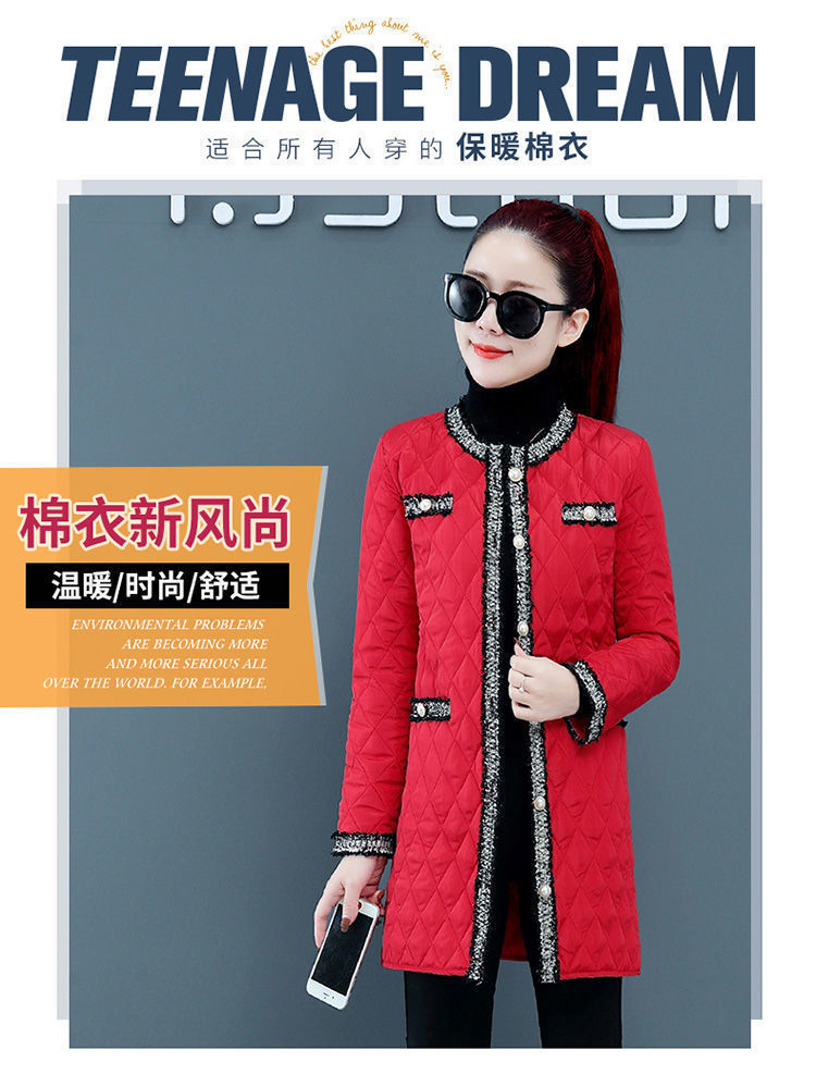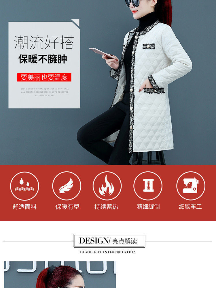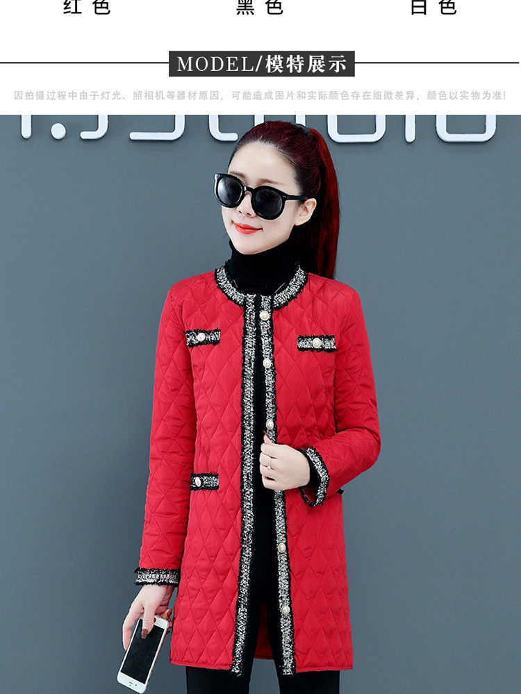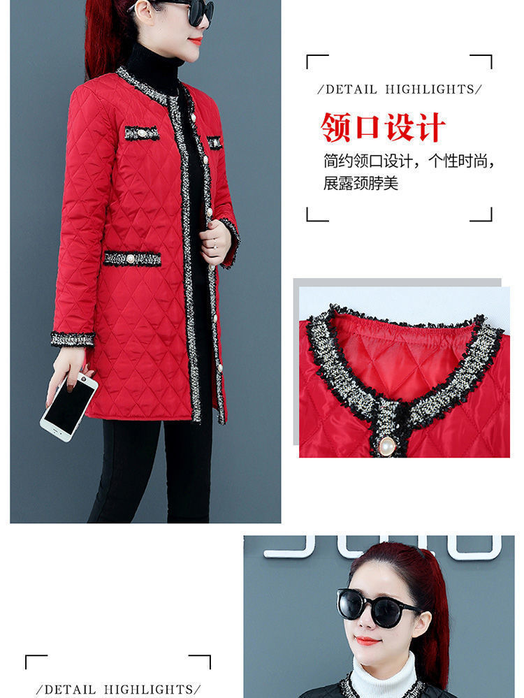 여성용 중간 길이 겨울 한국식 루즈한 면 코트, 다이아몬드 체크 무늬, 가벼운 다운 면 여성용 두꺼운 코트