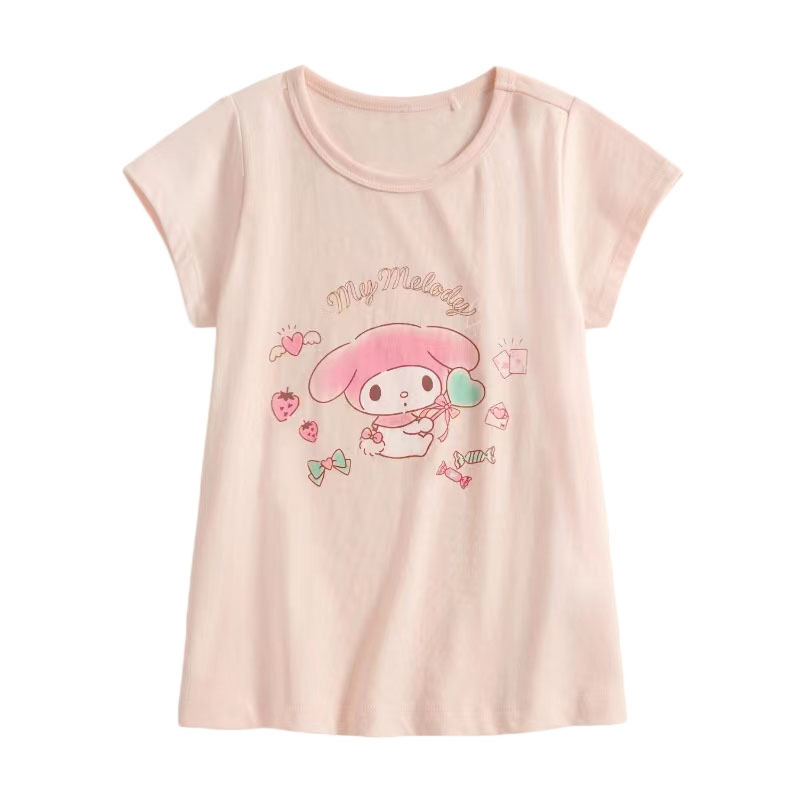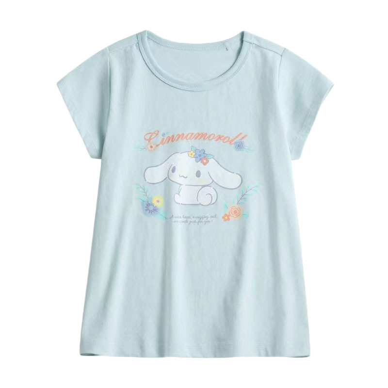 여름 소녀 코튼 반팔 티셔츠 강아지 토끼 중간 길이 서양식 스커트 반소매 셔츠 여름 얇은 베이스 T