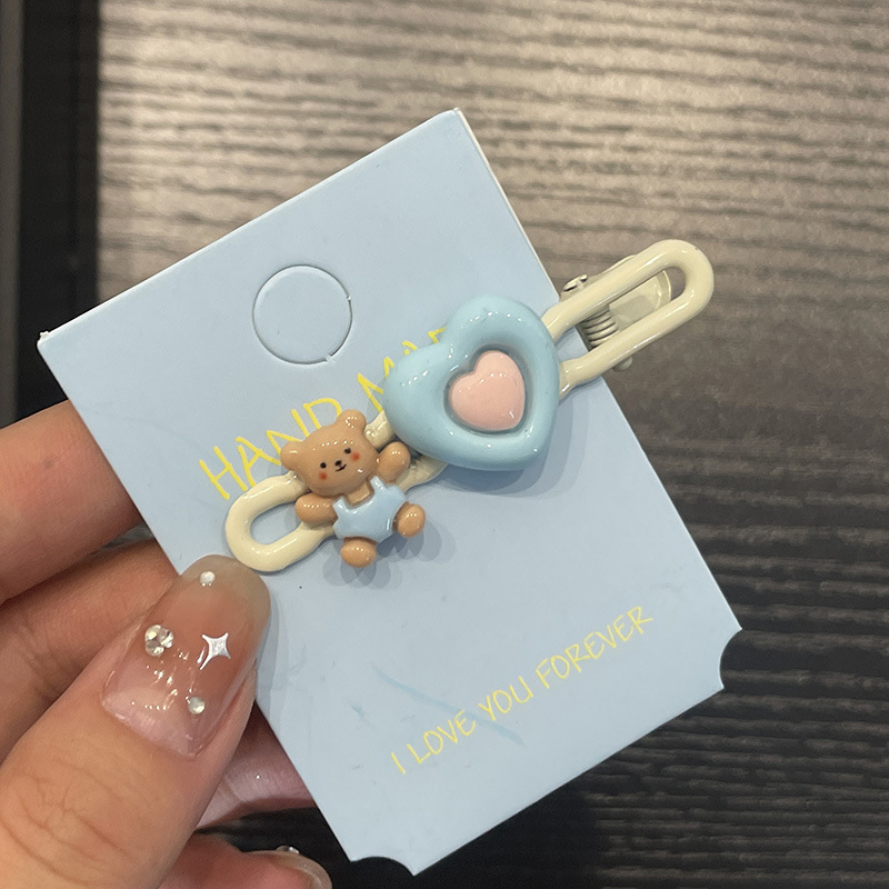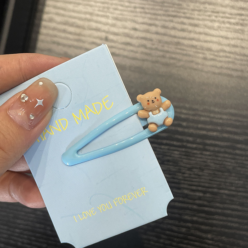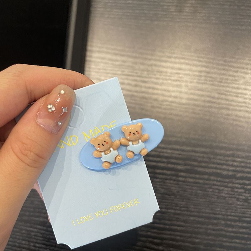 • 2#파란색 타원형 더블 곰 머리핀 - 종이 카드 없음