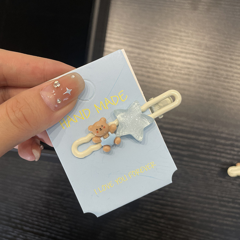 • 1#파란색 다섯개 별 곰 머리핀 - 종이 카드 없음