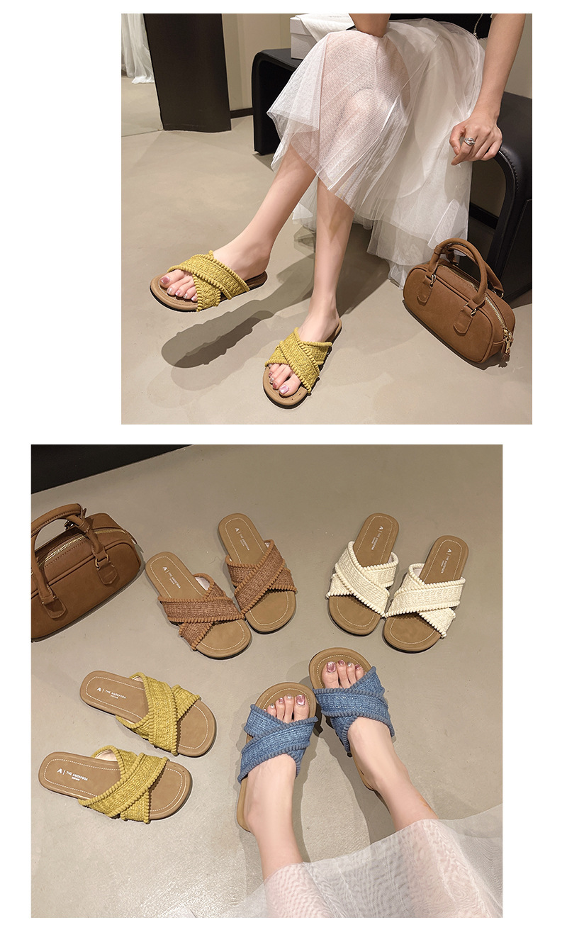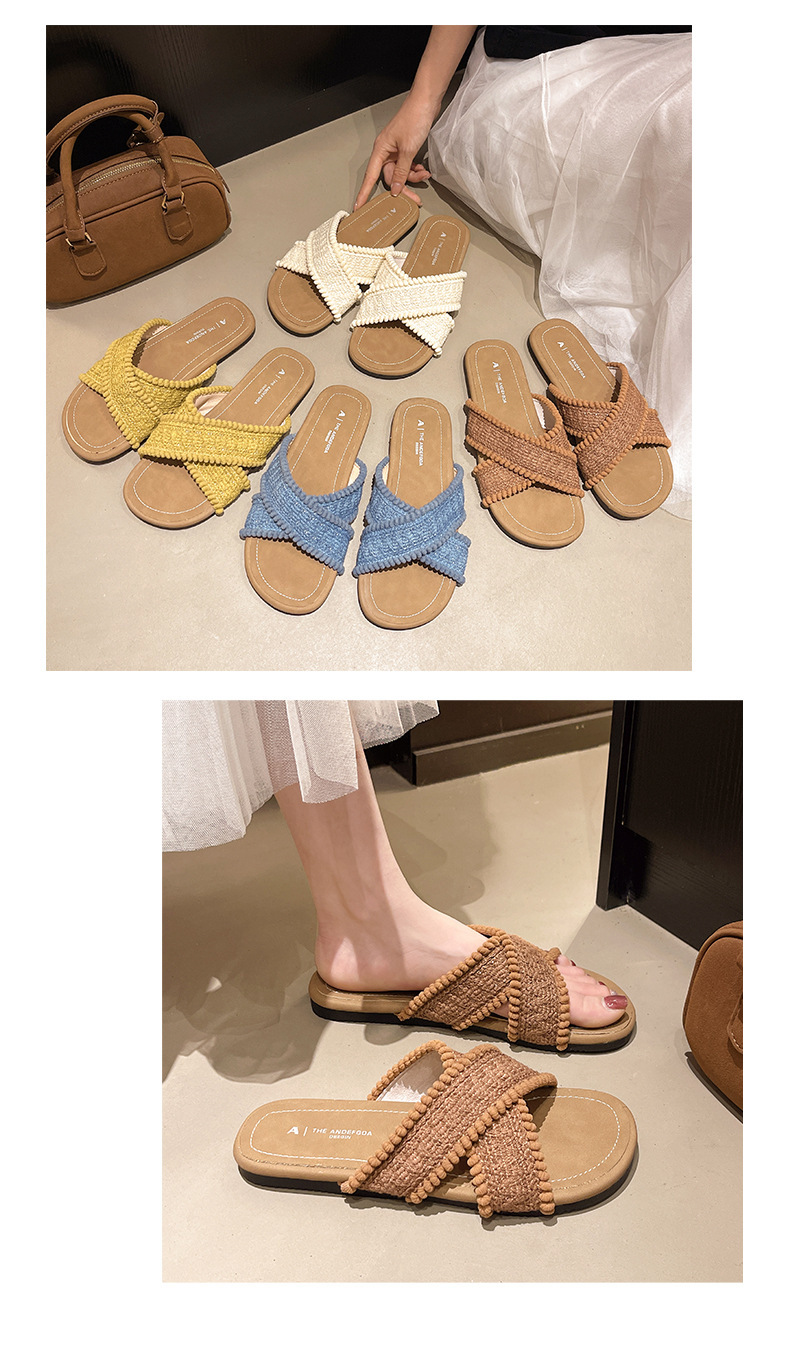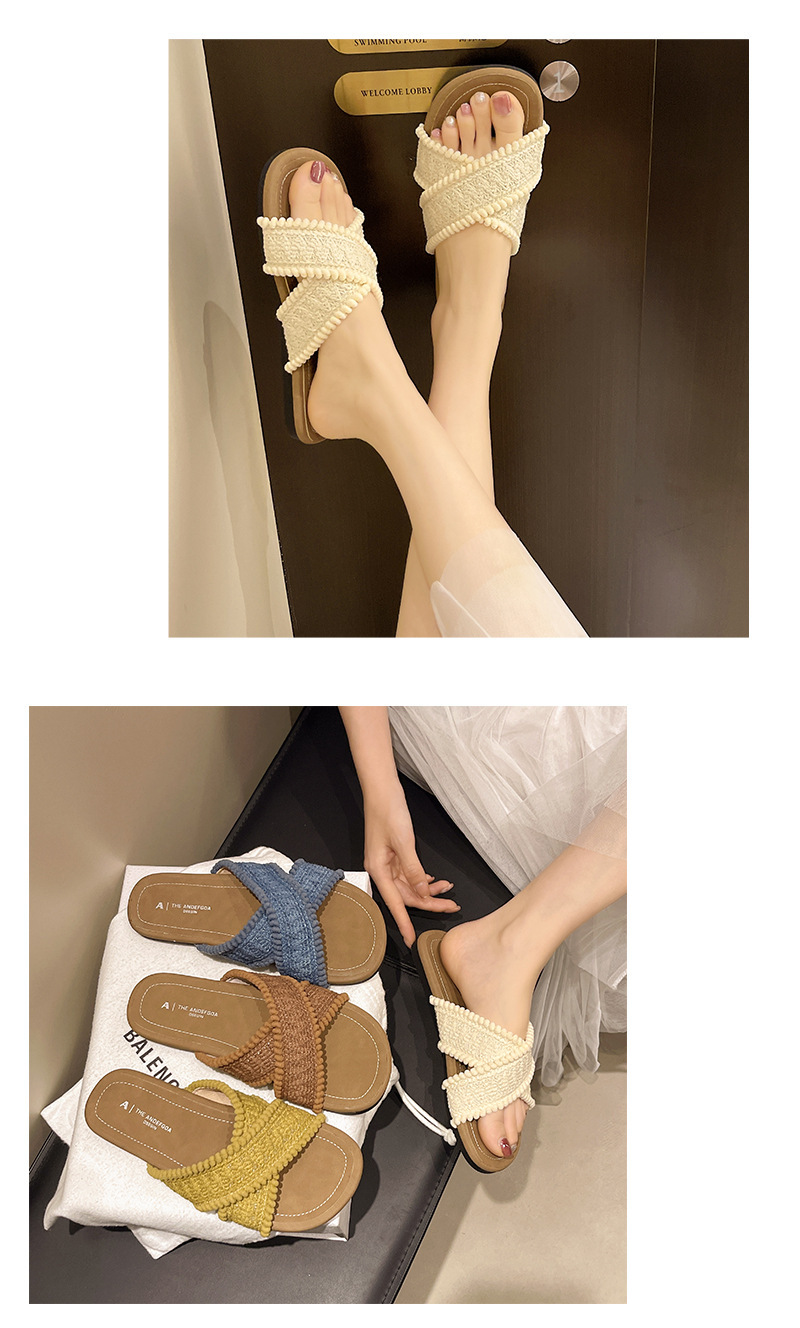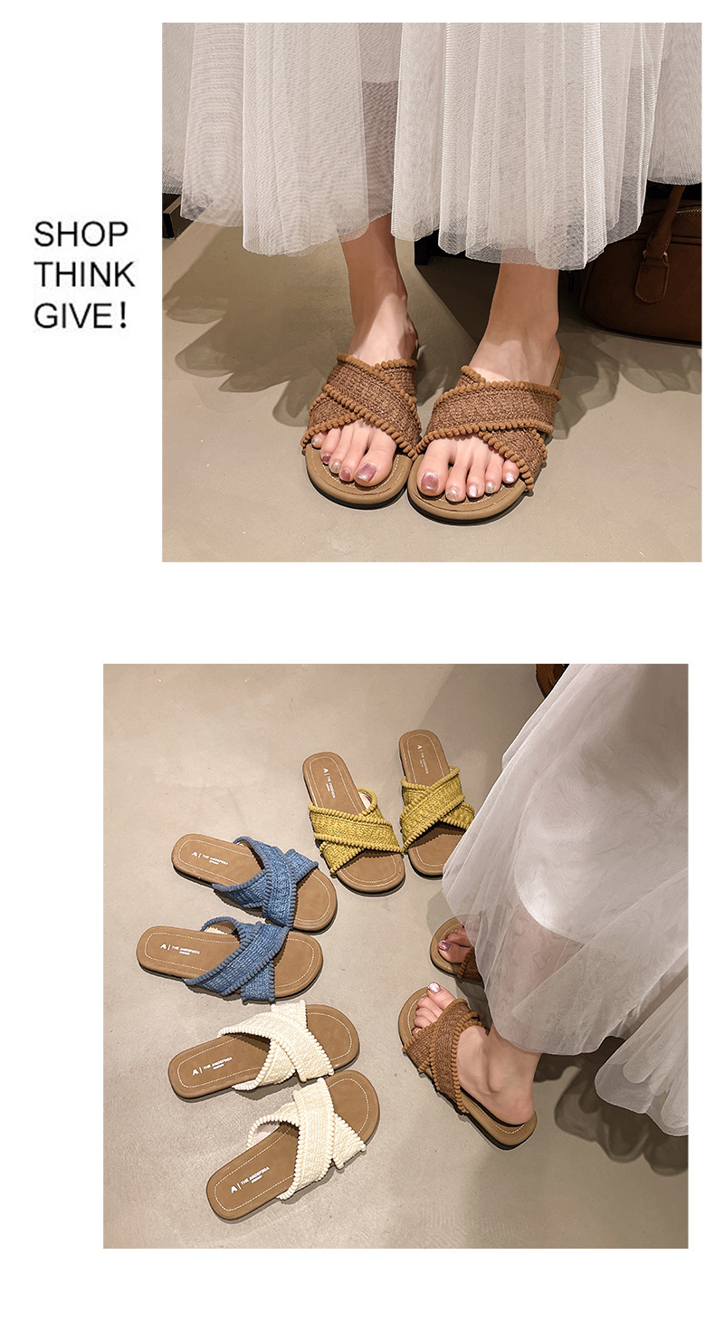 보헤미안 샌들 여성의 새로운 요정 겉옷 휴가 두꺼운 밑창 슬리퍼 여성 여름 해변 해변 신발 부드러운 플랫