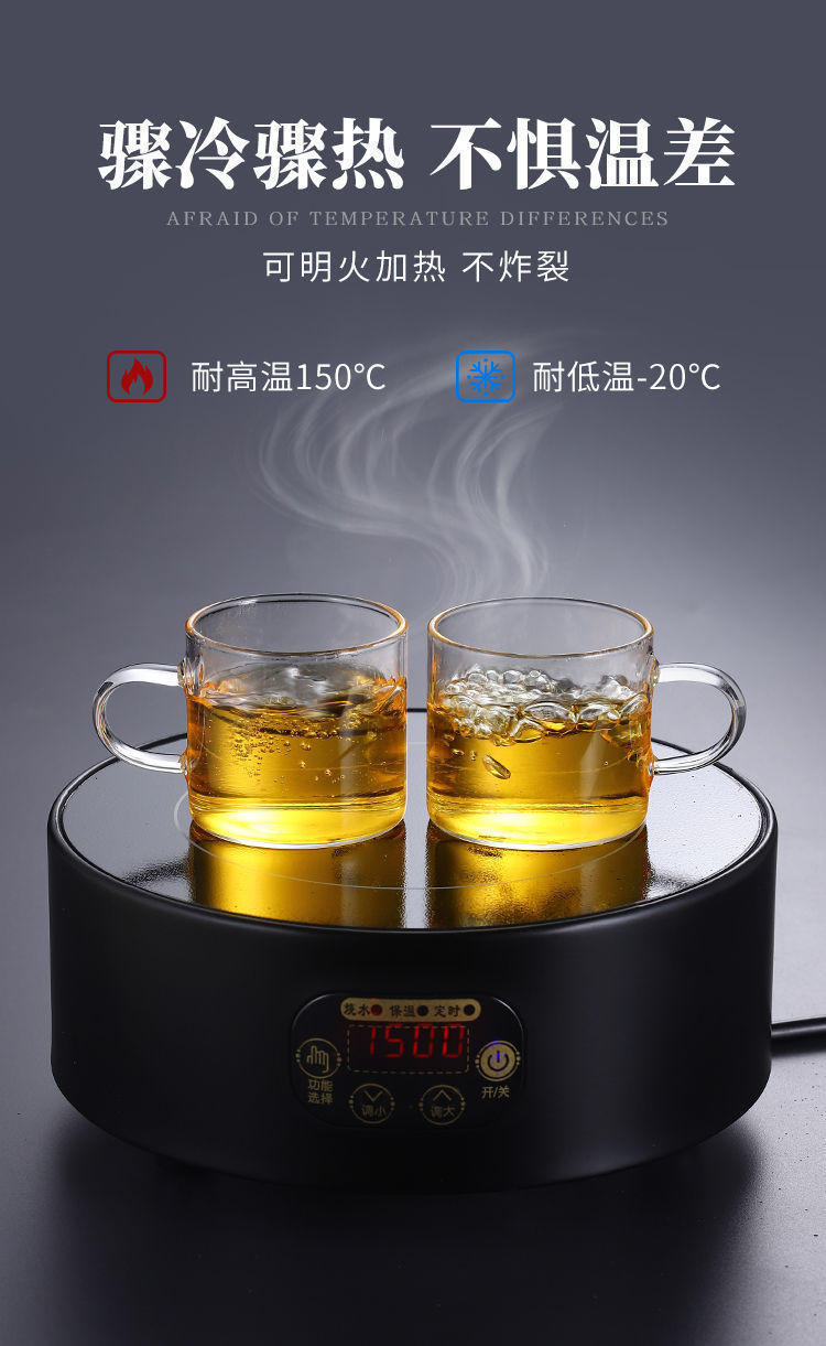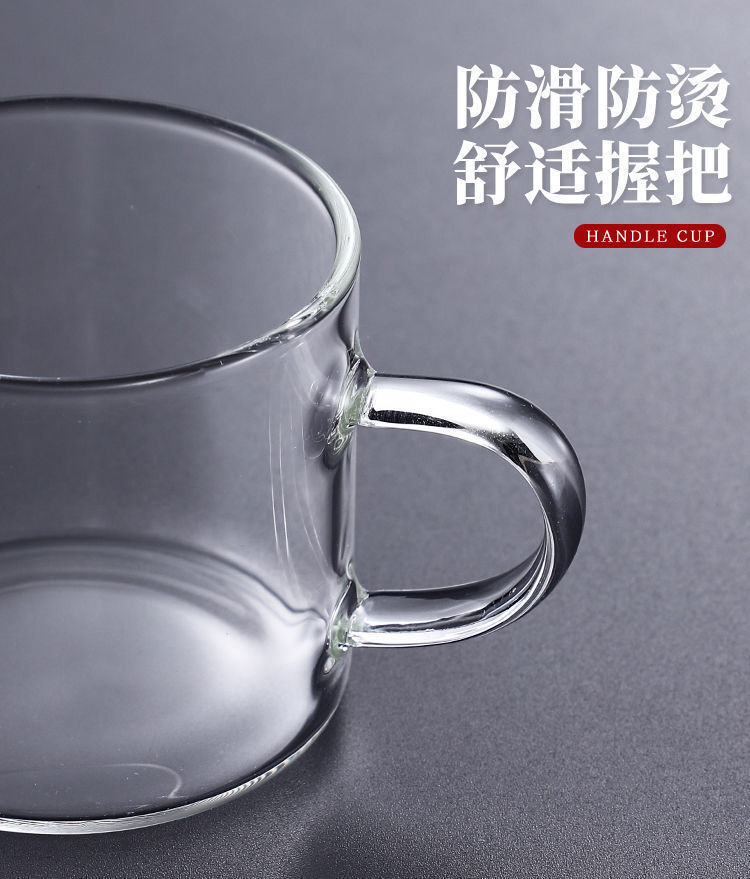 작은 유리 차 컵 가정용 간단한 투명 내열성 두꺼운 차 컵 쿵푸 차 세트 핸들 마스터 컵 차 그릇 공장스토어 가기