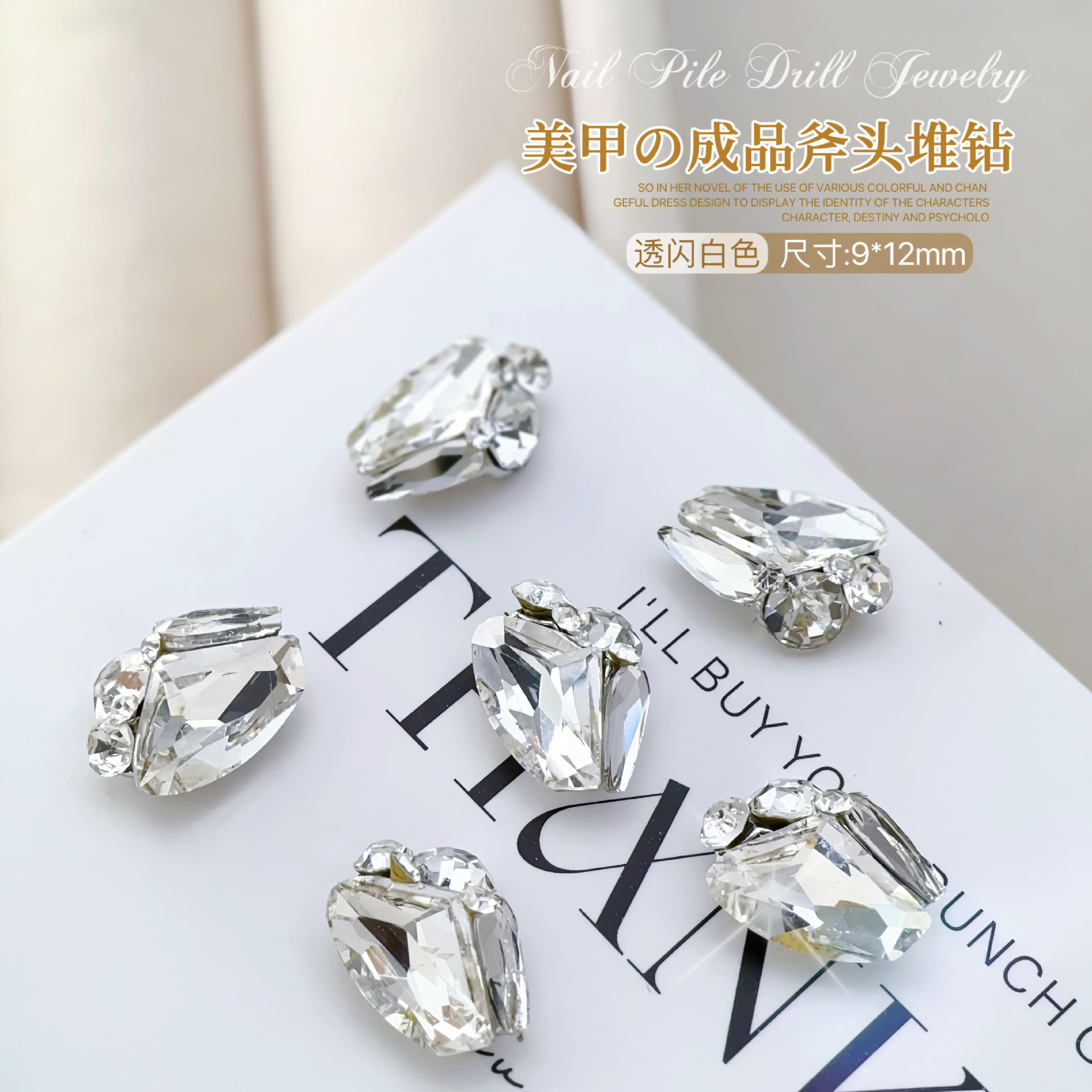 네일아트용 반짝이는 다이아몬드 장식, 투명한 흰색 큐빅, 아이스캔디, 비둘기알 크리스탈