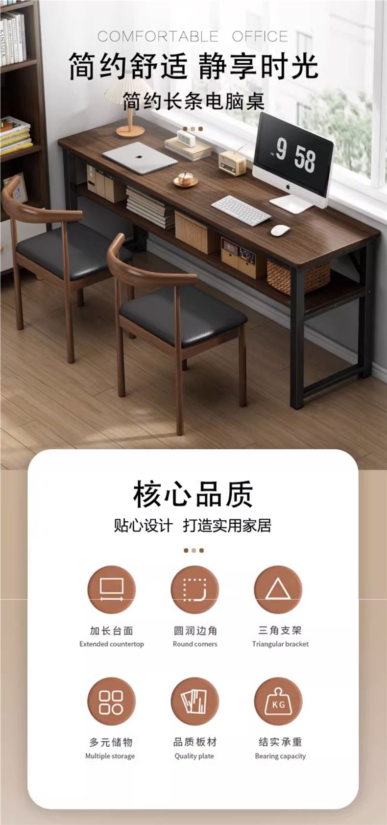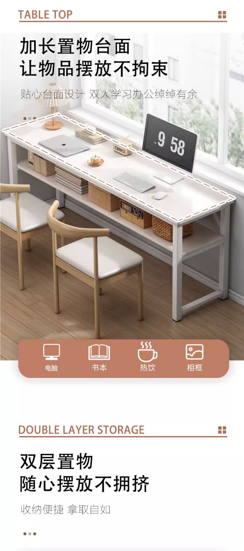 벽에 붙은 긴 테이블, 좁은 책상, 간단한 직사각형 책상, 2인용 학습 테이블, 컴퓨터 테이블, 가정용 작업대