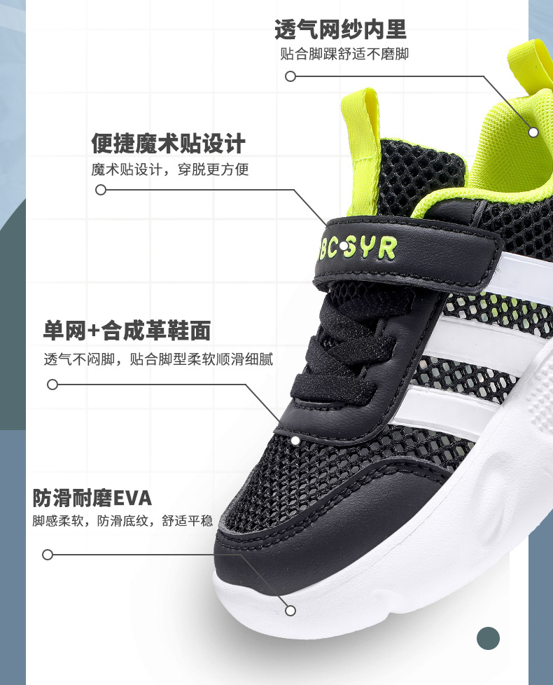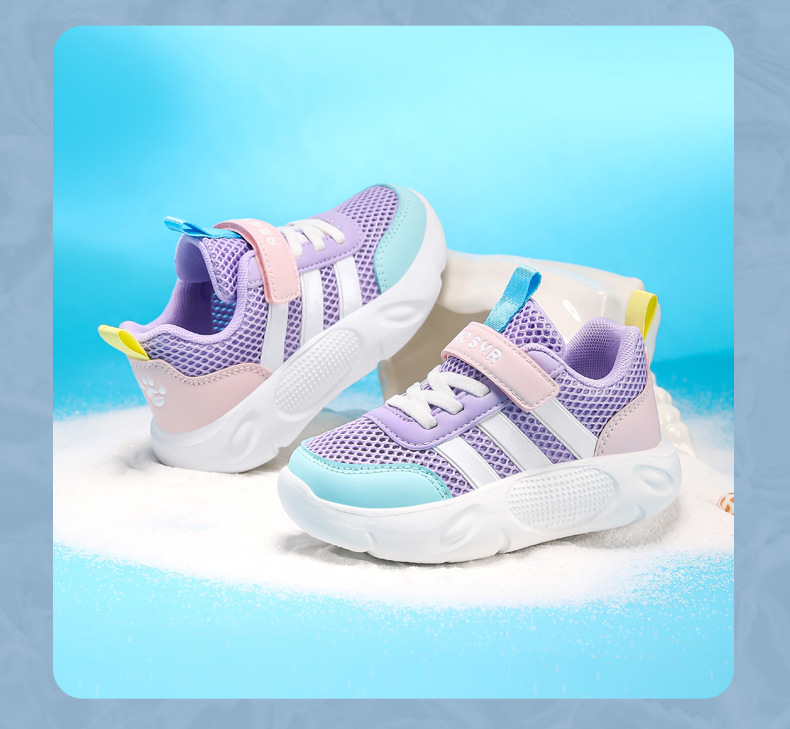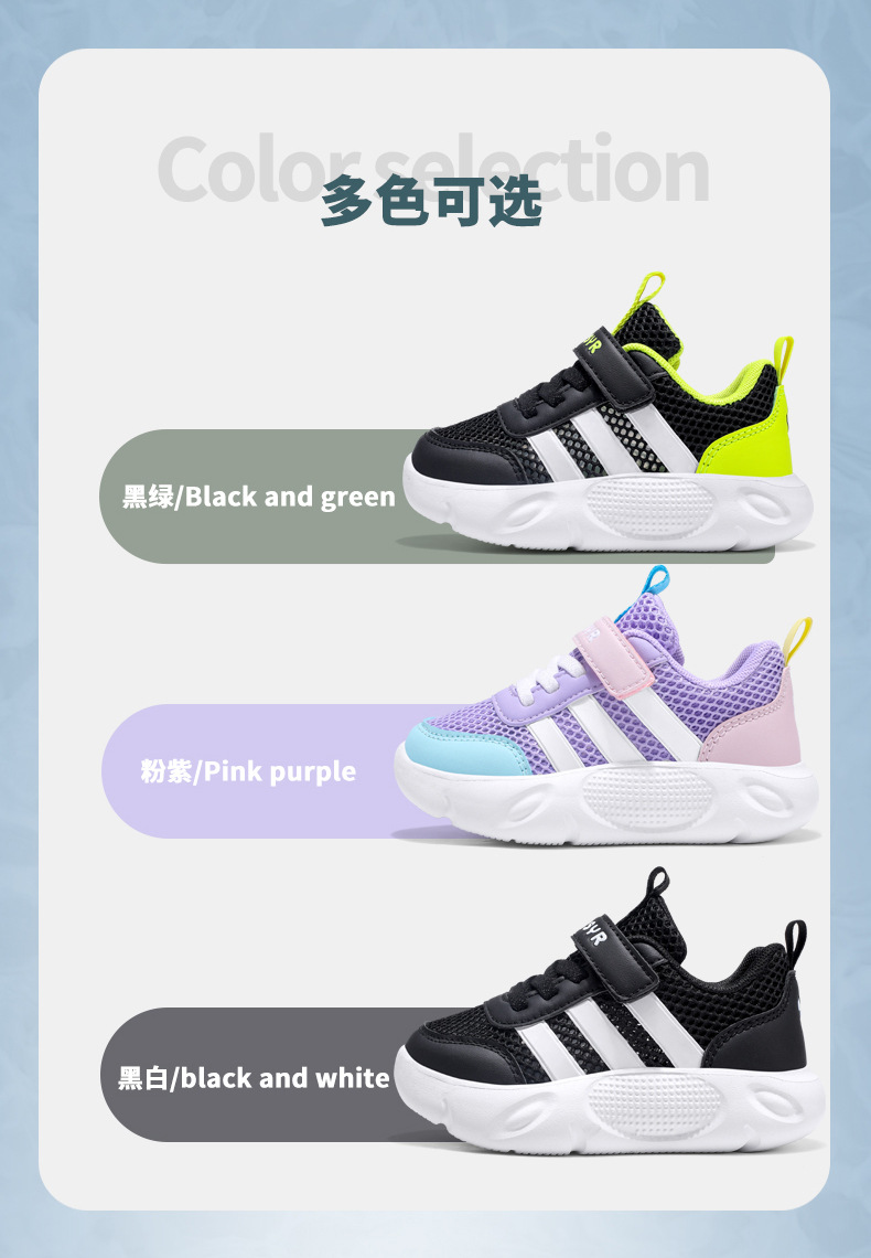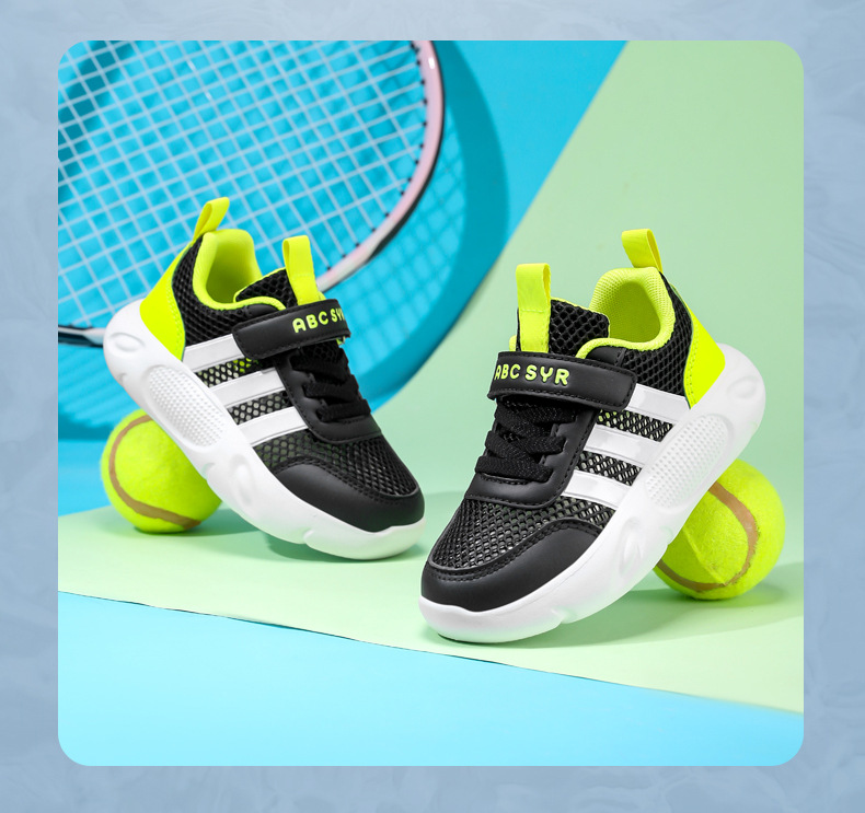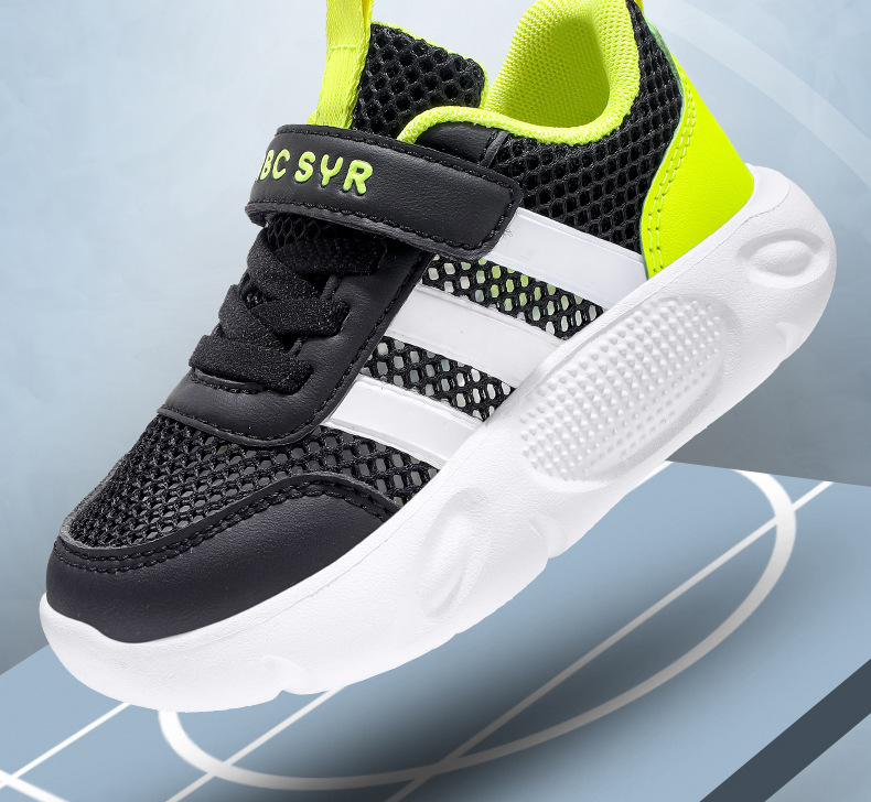 어린이 메쉬 통기성 스포츠 신발 여름 새로운 미끄럼 방지 부드러운 바닥 가볍고 편안한 단일 메쉬 소년과 소녀 운동화