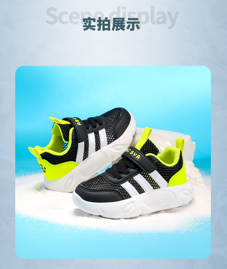 어린이 메쉬 통기성 스포츠 신발 여름 새로운 미끄럼 방지 부드러운 바닥 가볍고 편안한 단일 메쉬 소년과 소녀 운동화스토어 가기