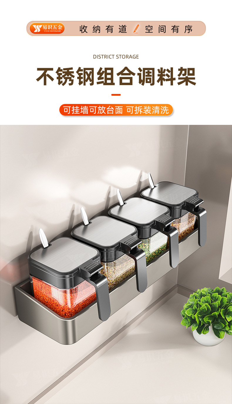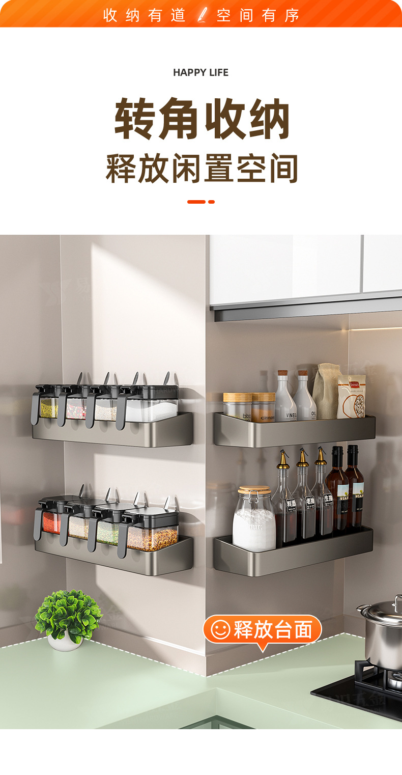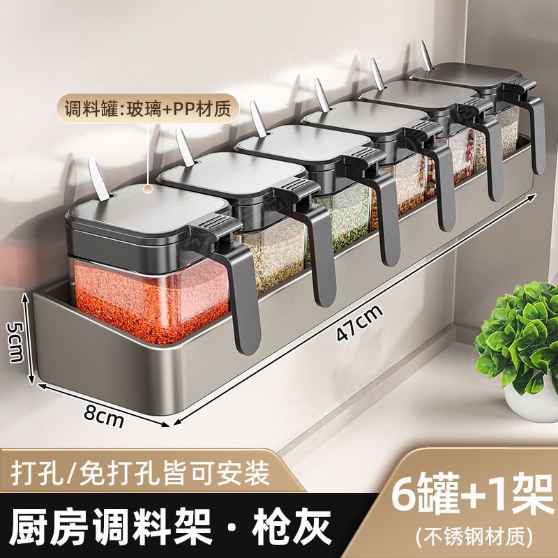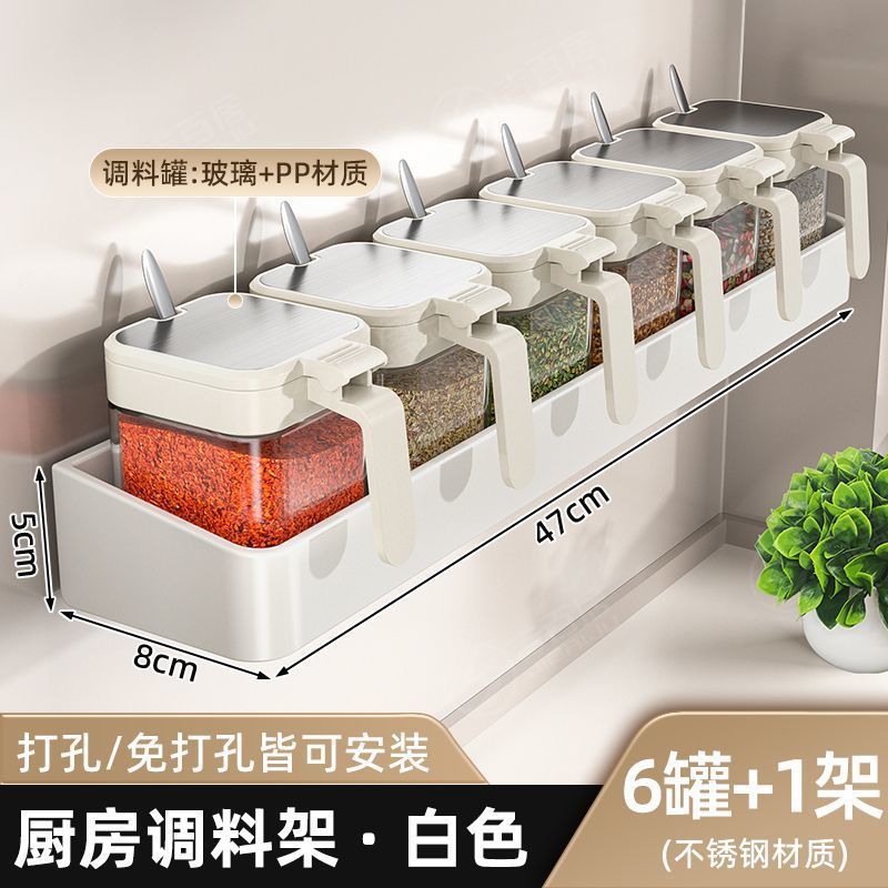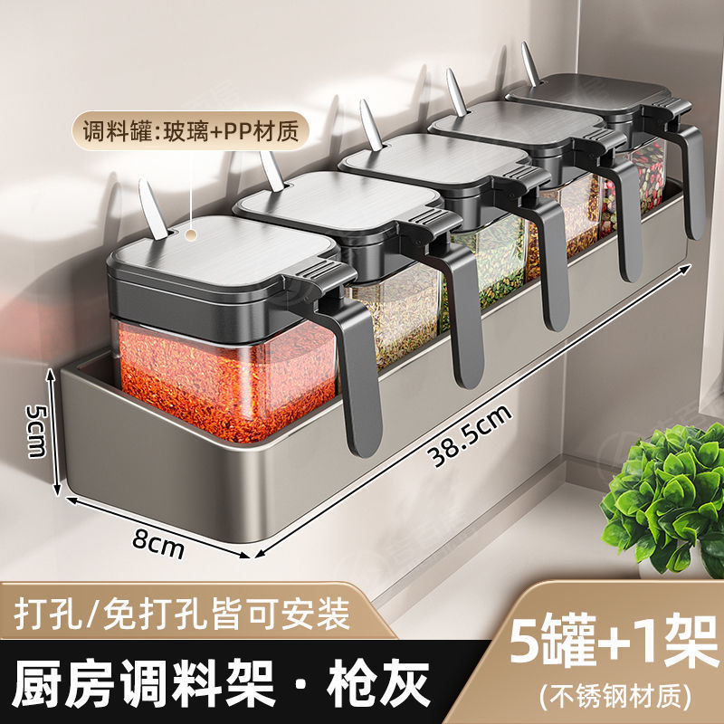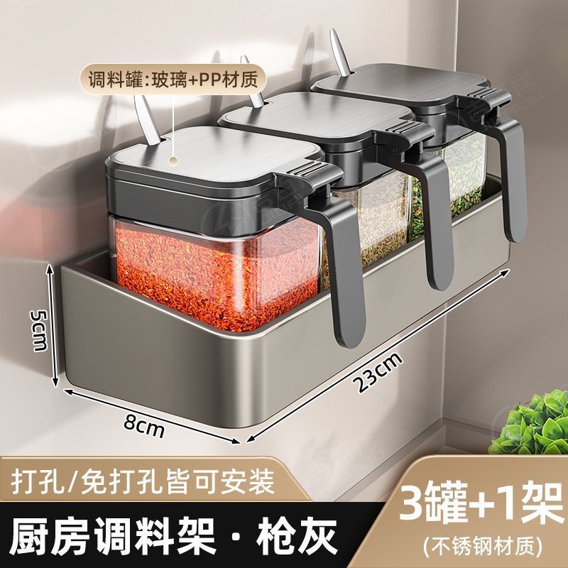 공장 주방 조미료 보관함, 펀치 없는 벽걸이형 조미료 조합 세트, 가정용 조미료 상자 및 항아리