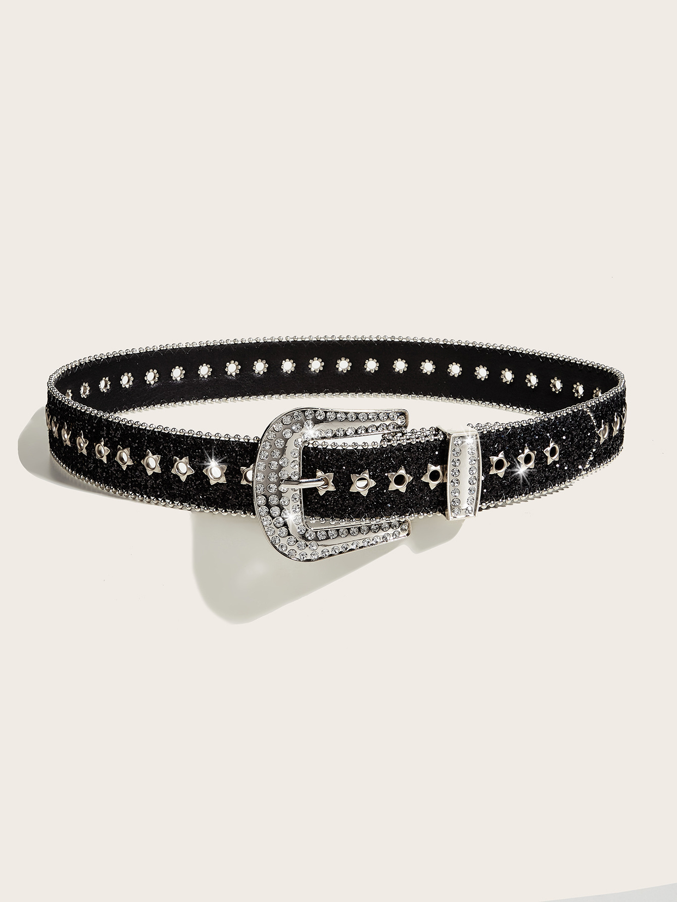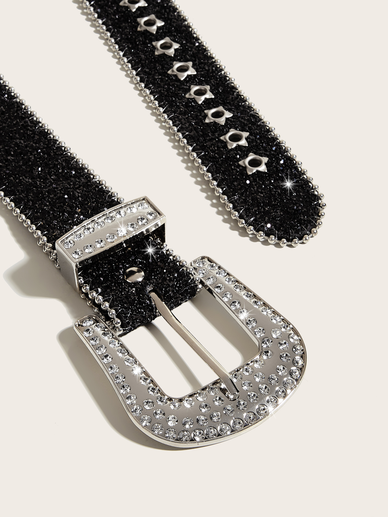 • 블랙 3.8 와이드 [라인스톤 버클이 달린 스타 골드 파우더]
