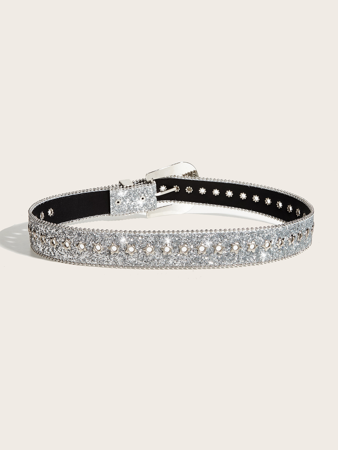 여성용 라인스톤 벨트, 유럽과 미국의 패셔너블한 개성과 다재다능한 디자인을 갖춘 스팽글 청바지로 장식된 인스 스타일의 와이드 벨트