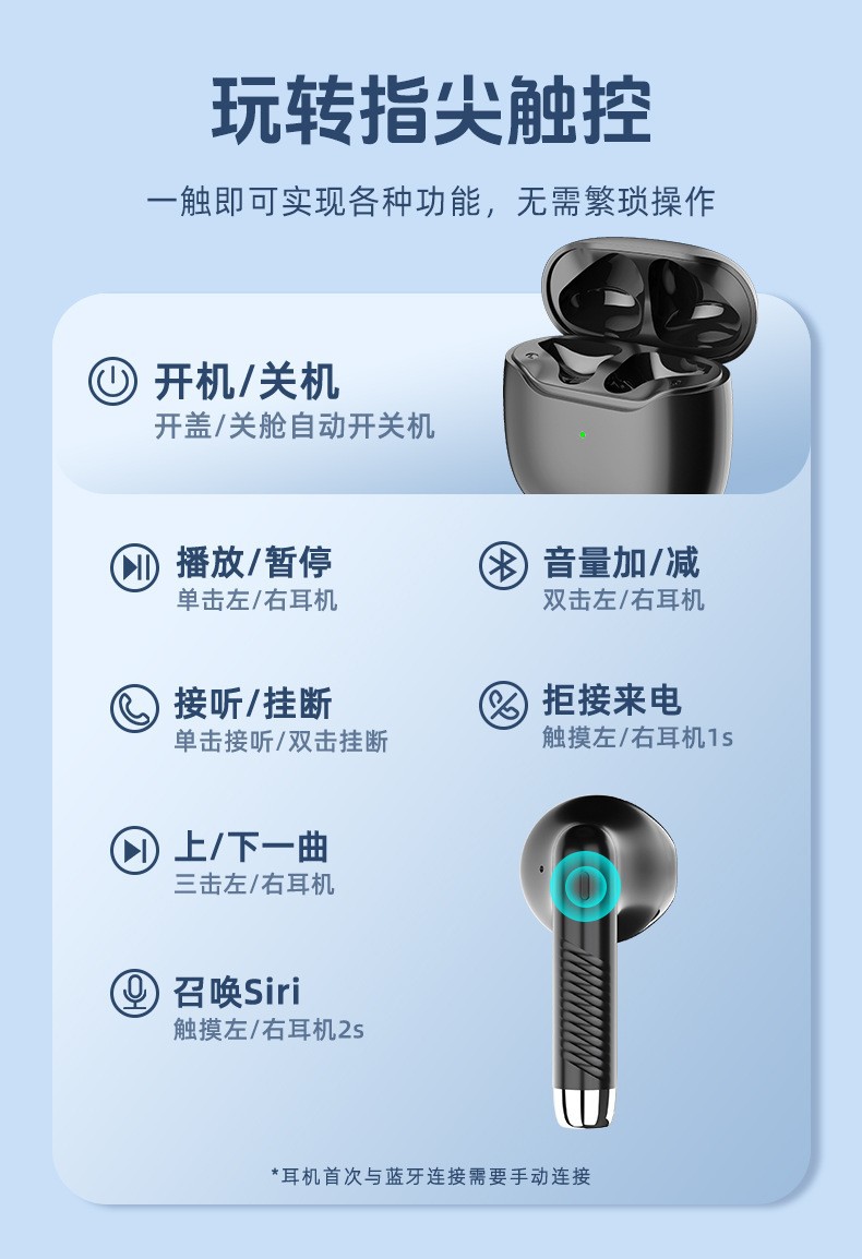 Amazon의 가장 인기 있는 개인 모델 TWS 미니 무선 헤드폰 스테레오 휴대폰 통화 음악 Bluetooth 헤드셋 5.3