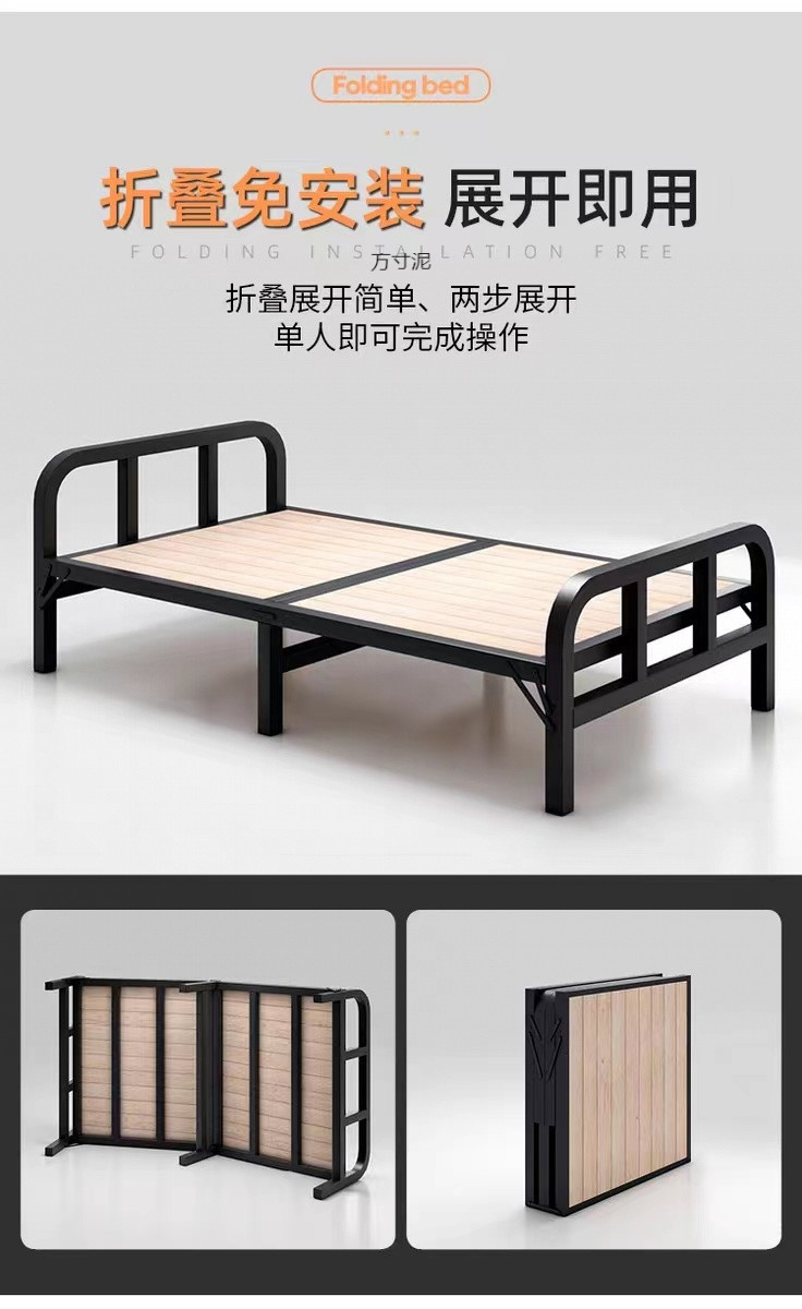 접이식 침대 싱글 원목 침대 패널 가정용 성인 간이 침대 튼튼한 접이식 철제 침대 1.2m 작은 침대 더블 침대
