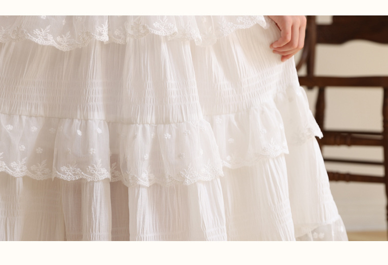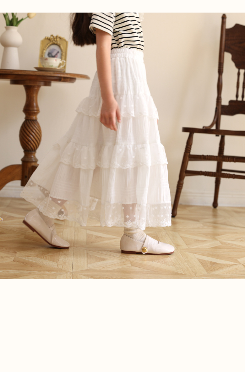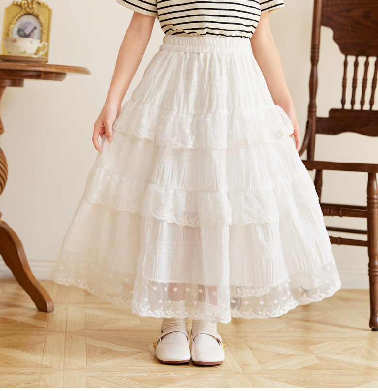 소녀의 치마 여름 2025 새로운 어린이 케이크 공주 원피스 어린이 소녀의 레이스 화이트 롱 스커트