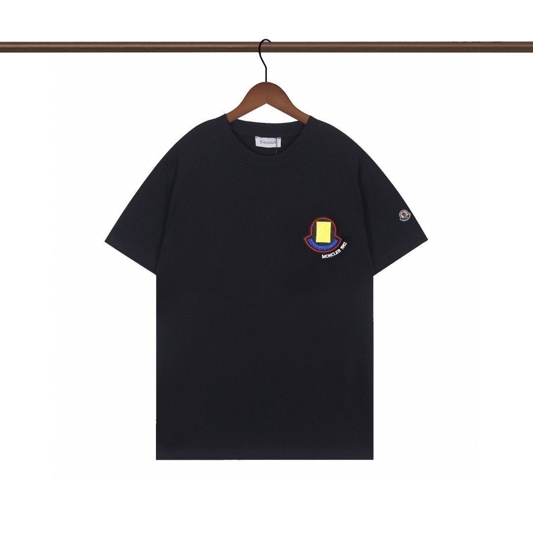 25mon 트렌디 브랜드 라운드넥 앞면 자수 패턴 반팔 티셔츠 남녀공용 남성 반팔 여름 커플 스타일스토어 가기