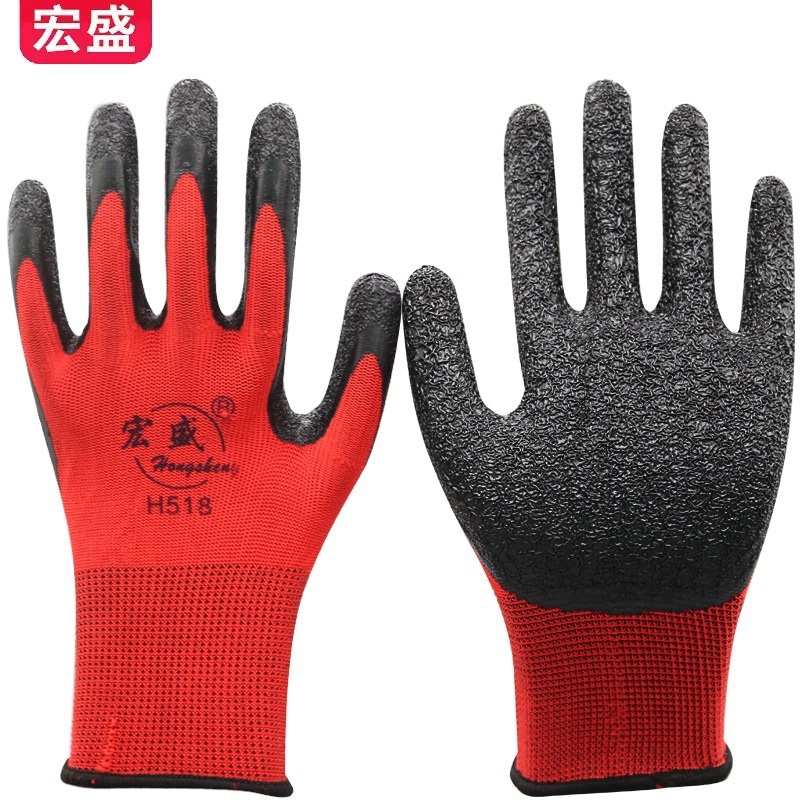 노동 보호 장갑 나일론 고무 라텍스 주름 점착제 내마모성 미끄럼 방지 건설 현장 작업 장갑 도매 남성용스토어 가기