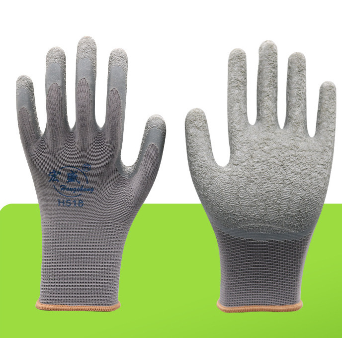 노동 보호 장갑 나일론 고무 라텍스 주름 점착제 내마모성 미끄럼 방지 건설 현장 작업 장갑 도매 남성용