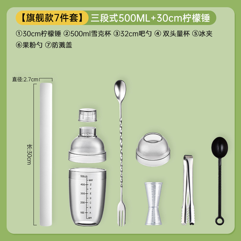 • 재고 있음/[두꺼운 7종 세트] 3단 500ML+24.5cm 주스 스틱+바 스푼