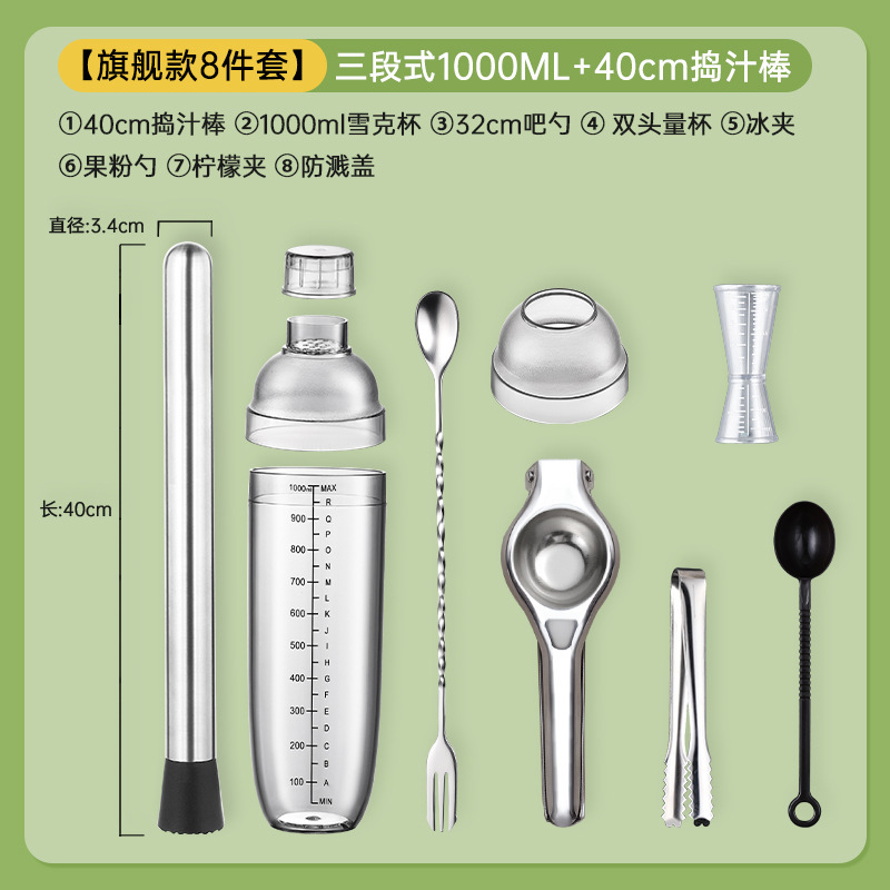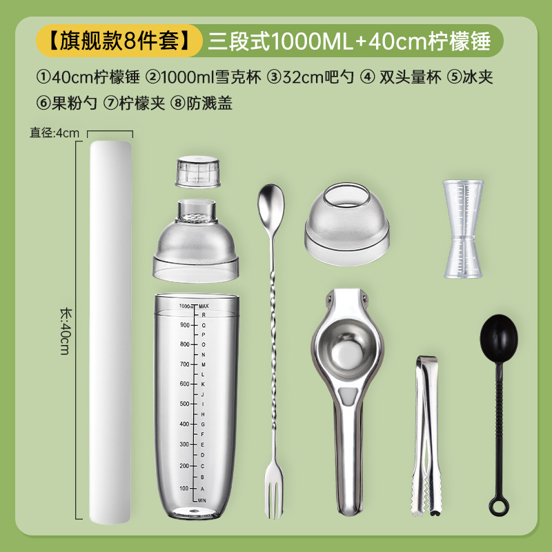• 재고 있음/[두꺼운 7종 세트] 3단 1000ML+40cm 주스 스틱+바 스푼
