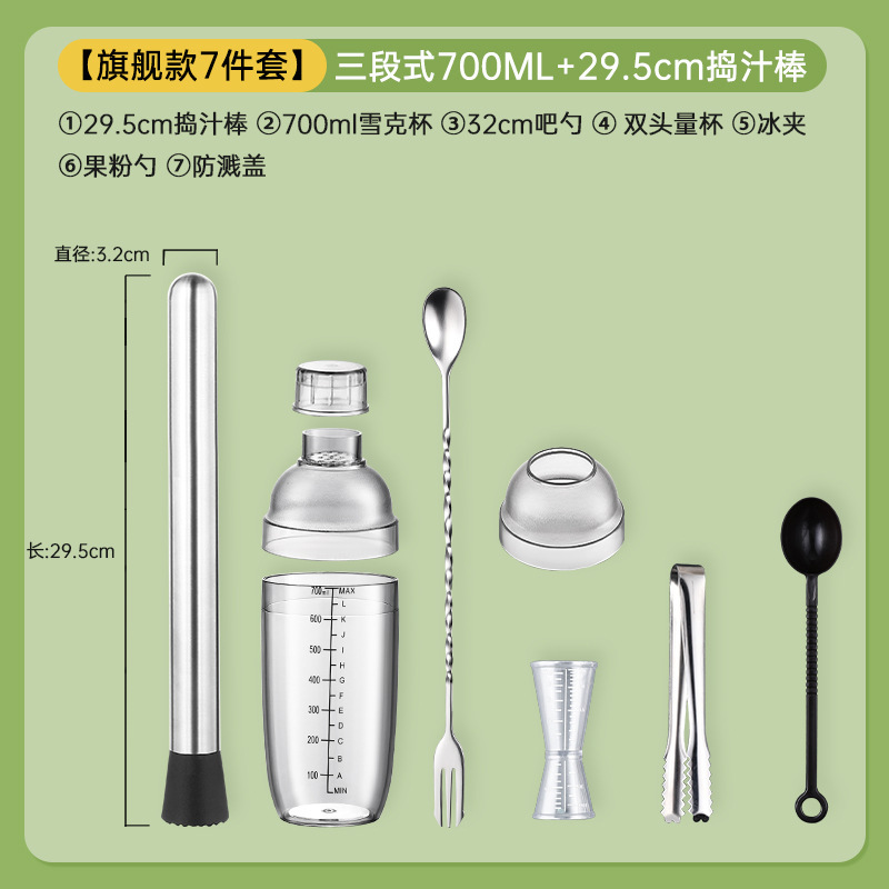 • 재고 있음/[두꺼운 7종 세트] 3단 700ML+29.5cm 주스 스틱+바 스푼
