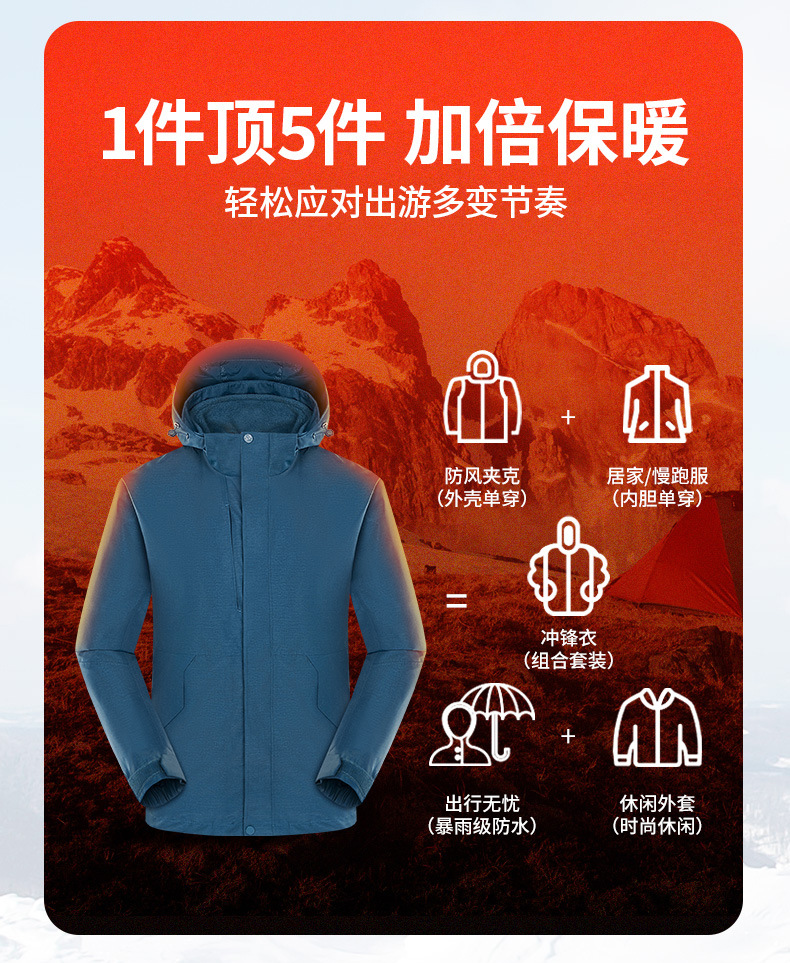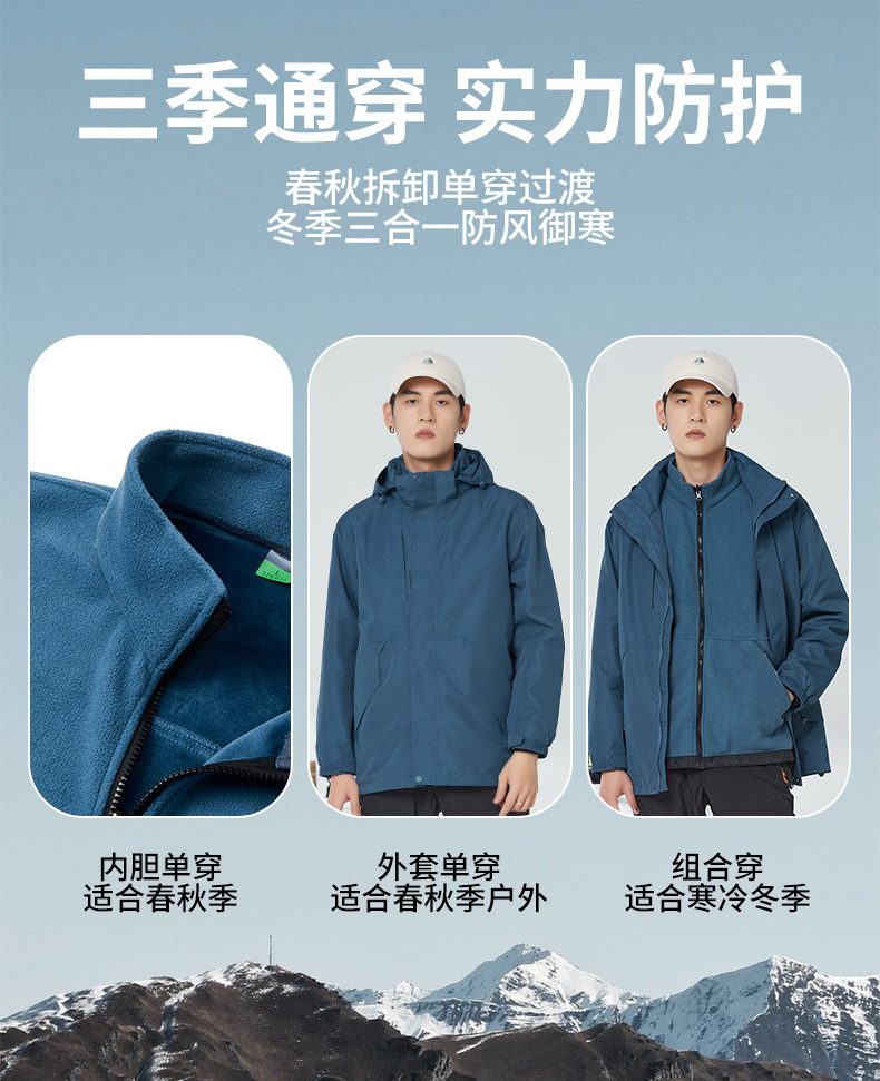 아웃도어 재킷 3-in-1 탈착식 투피스 방풍, 방수 및 따뜻한 등산 재킷 스키 재킷 도매스토어 가기