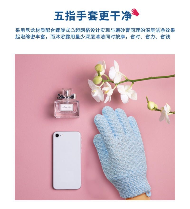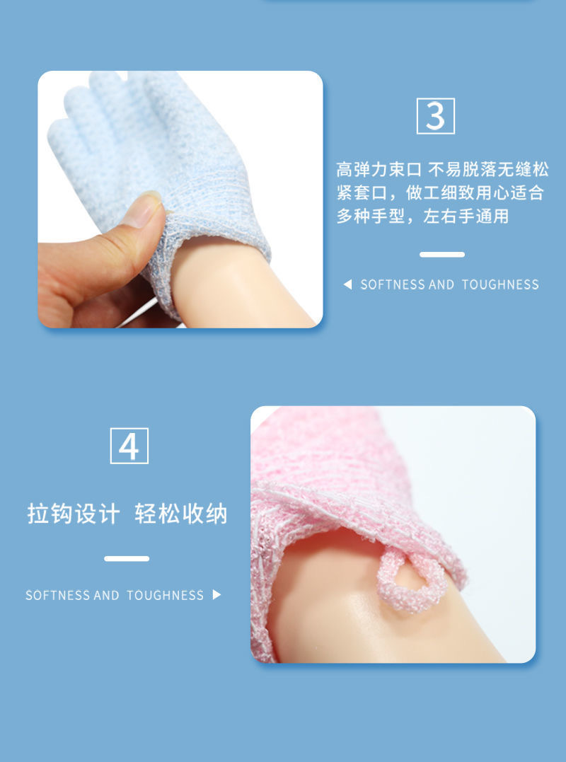 목욕용 특수 목욕 장갑, 나일론 다섯 손가락 양면 반투명 목욕 수건, 강력한 피부 제거 및 진흙 문지름 목욕 장갑스토어 가기