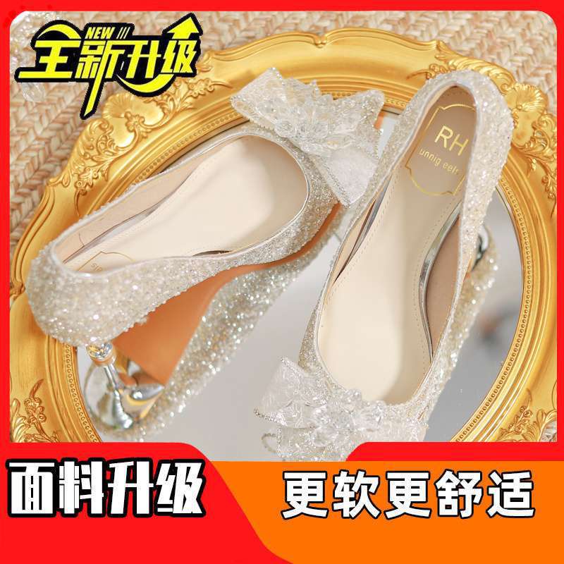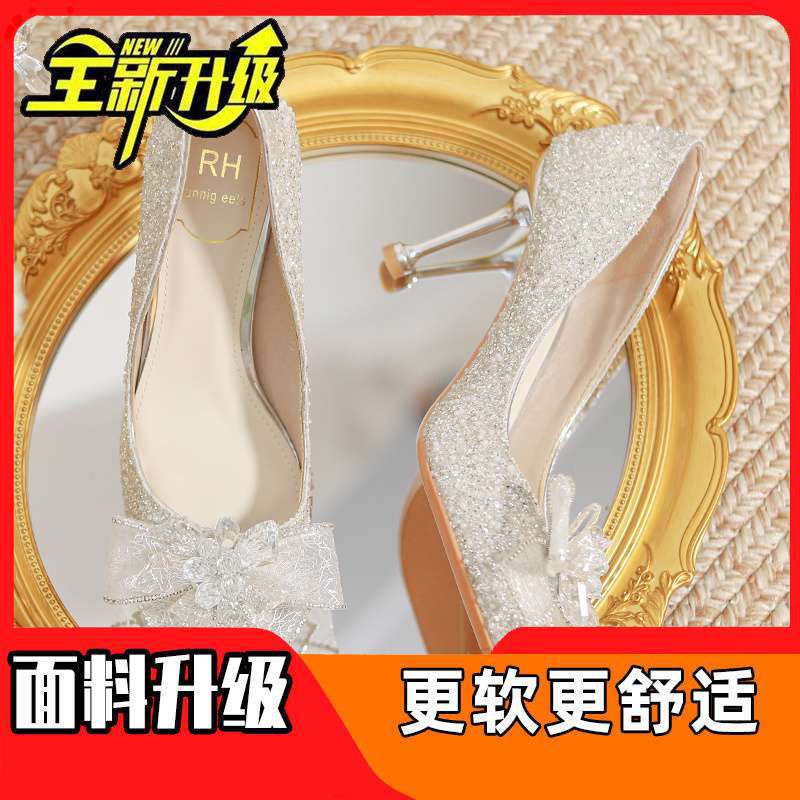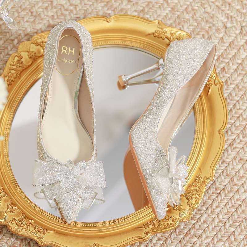 실버 웨딩 신발 신부 신발 웨딩 원피스 약혼 웨딩 크리스탈 신발 2025 새로운 도착 속옷 하이힐 여성 스틸레토 화이트스토어 가기