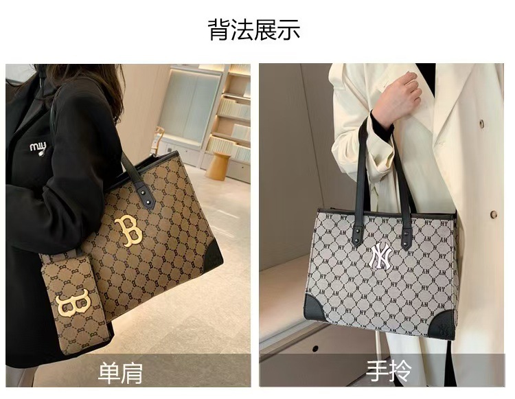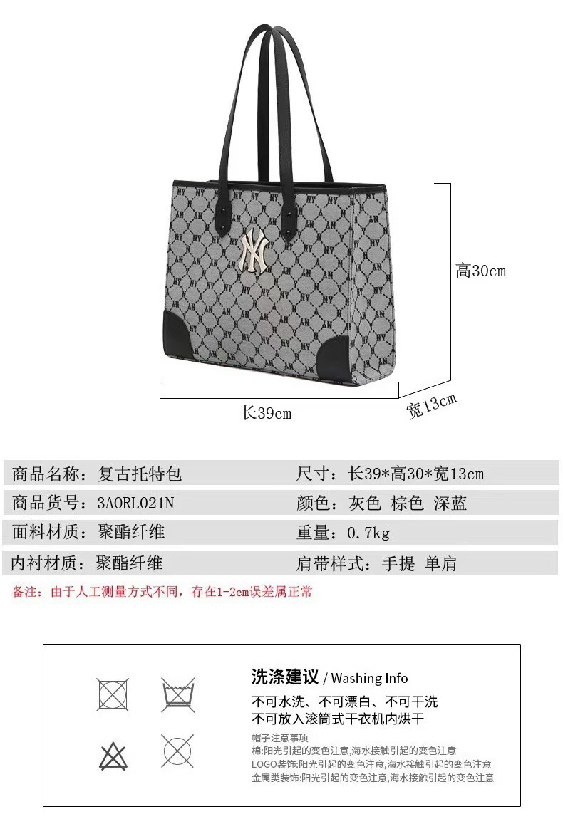 한국 MLB 토트 백 클래식 올드 플라워 NY 수 놓은 대용량 컴퓨터 가방 대학생 클래스 통근 가방스토어 가기
