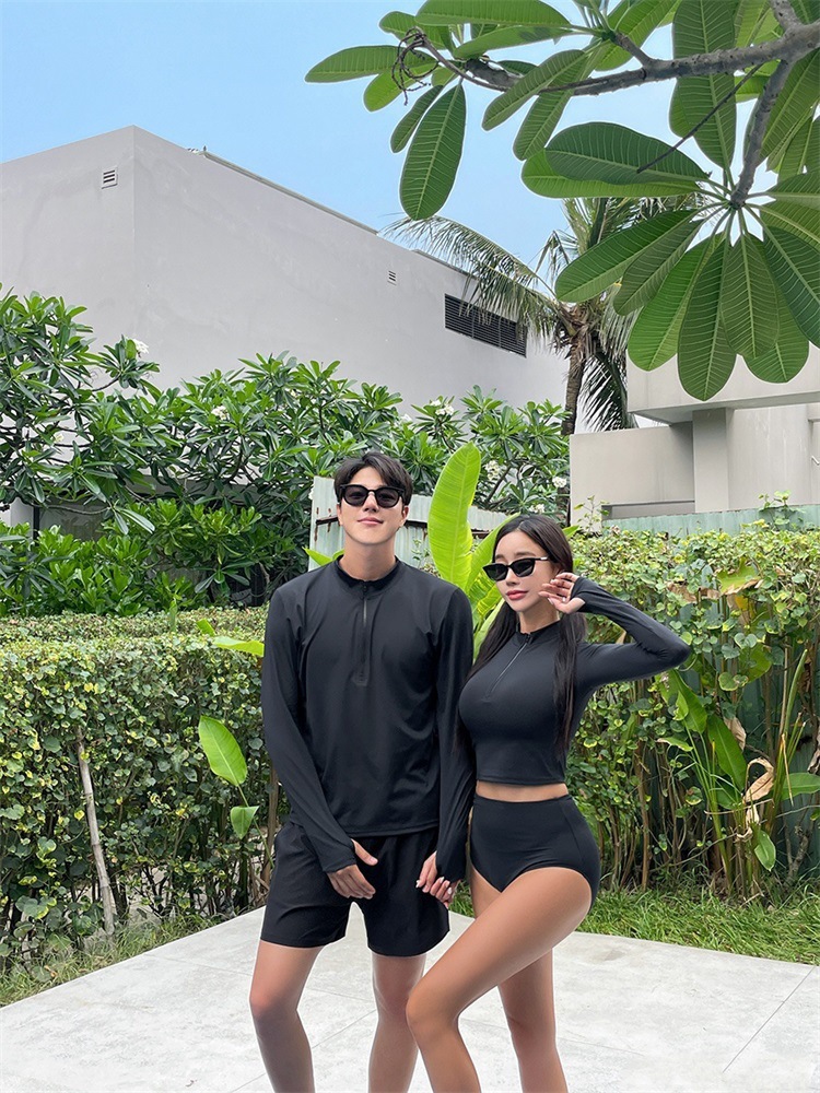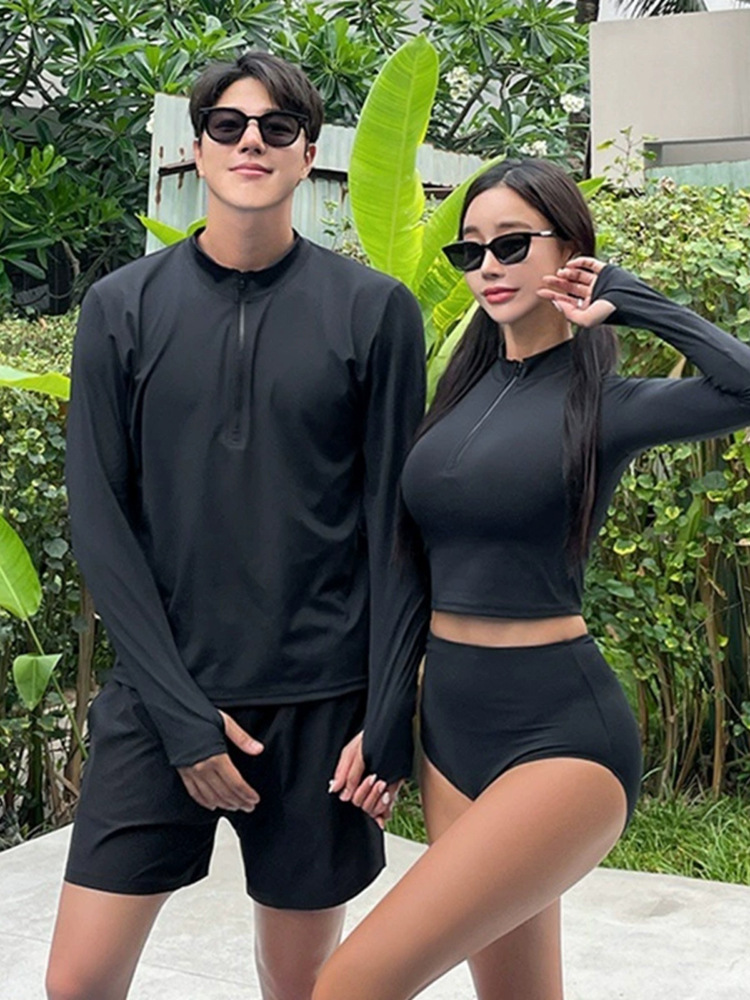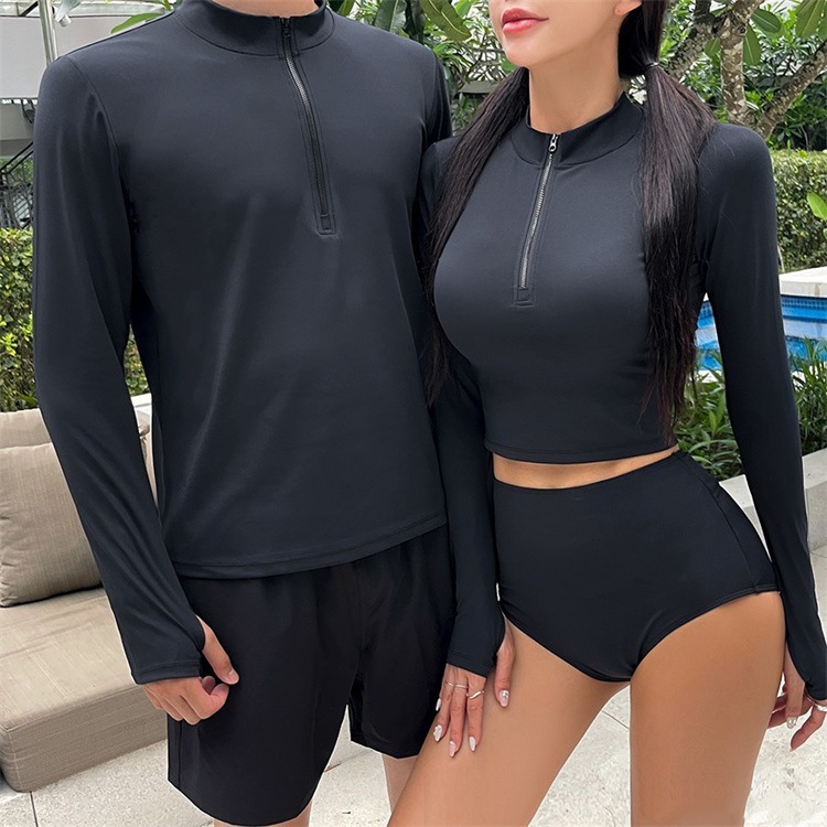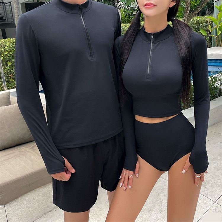 공장 직접 판매 새로운 여름 커플 잠수복 남성용 투피스 여성용 긴팔 스플릿 세트 핑거 서핑 수영복스토어 가기