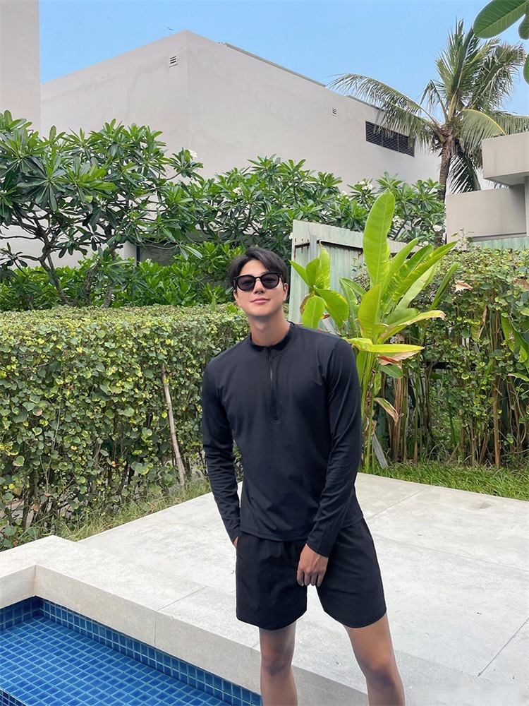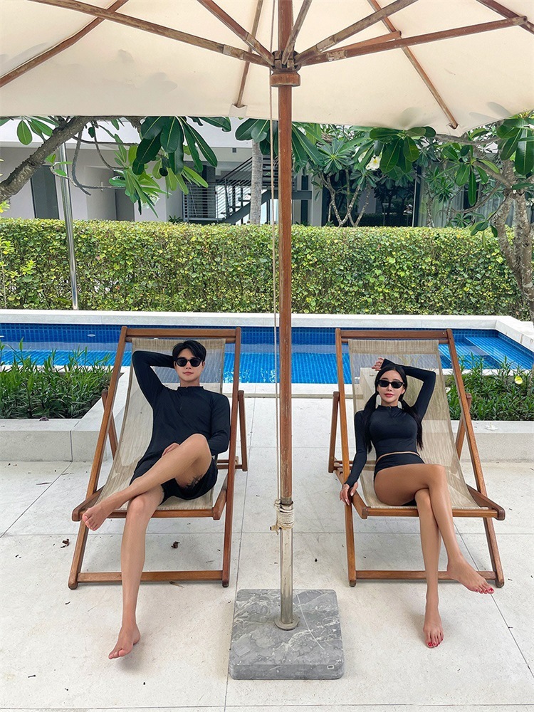 공장 직접 판매 새로운 여름 커플 잠수복 남성용 투피스 여성용 긴팔 스플릿 세트 핑거 서핑 수영복