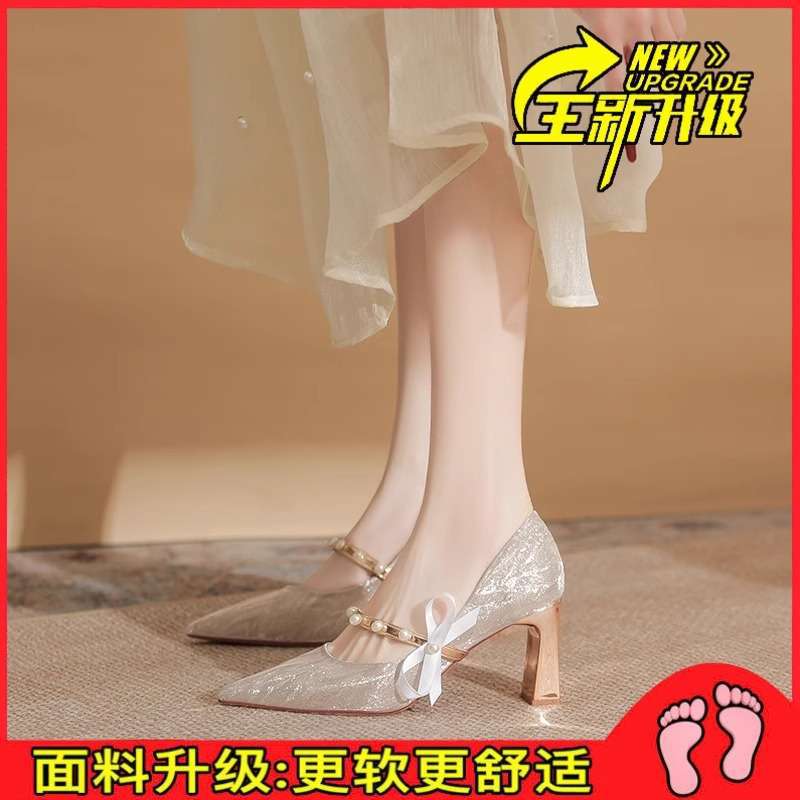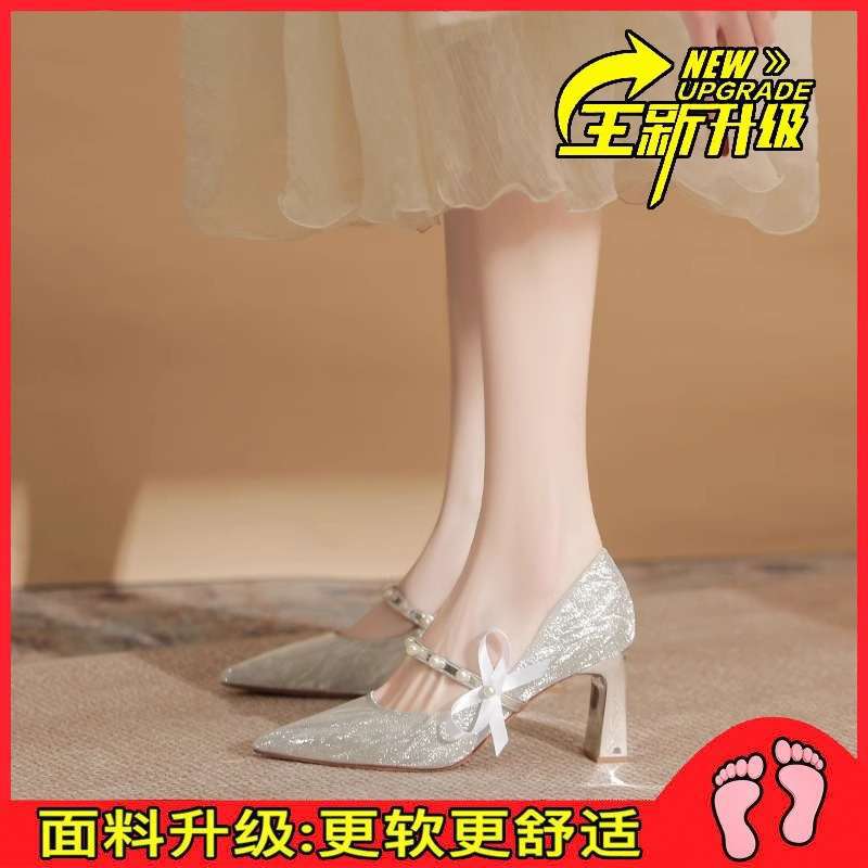 피곤하지 않은 발 청키 힐 하이힐 메인 웨딩 원피스 웨딩 신발 여성 Xiuhe 프랑스 스파클링 크리스탈 들러리 신부 신발 투복 봄스토어 가기