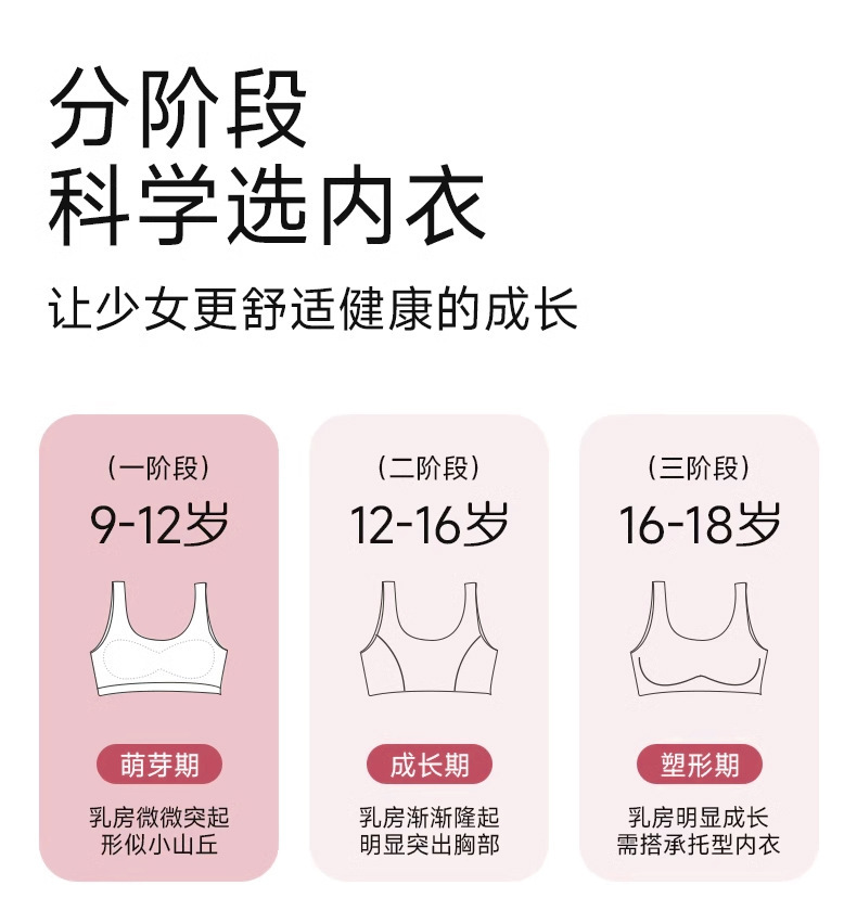 발달기 여아 속옷 9~16세 여아, 중학생, 편안하고 돌출 방지, 중학생 2단계 브라스토어 가기