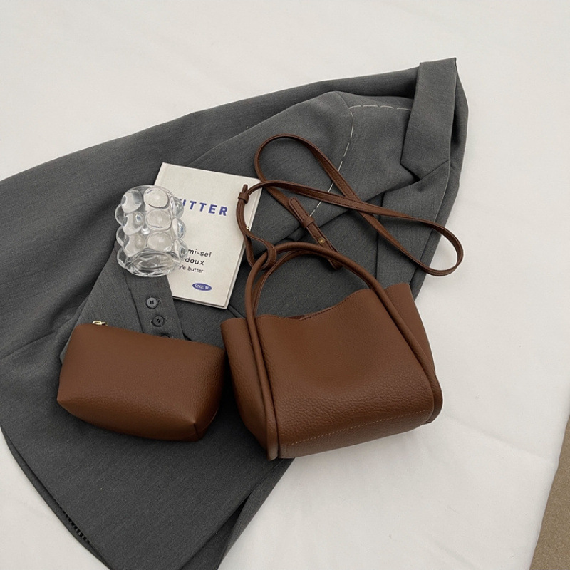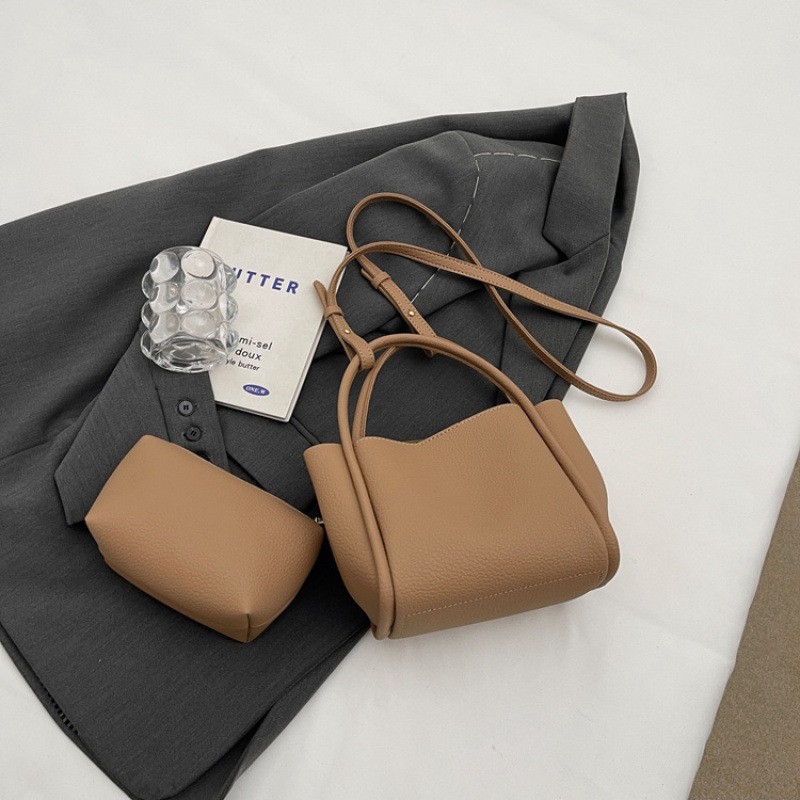 어머니와 아들 핸드백 가방 여성의 하이 엔드 느낌 틈새 음식 바구니 가방 단색 양동이 가방 메신저 가방 2024 새로운 스타일스토어 가기