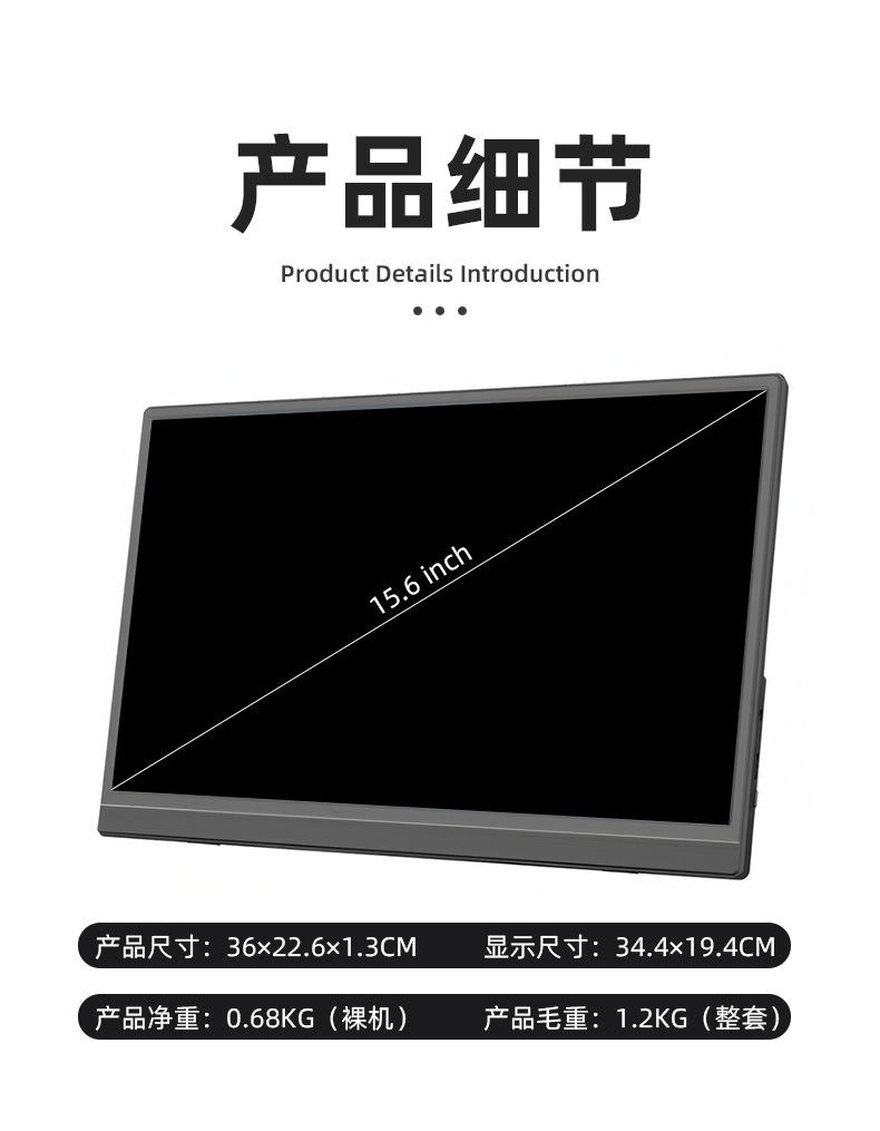 15.6inch Type-C 게임용 휴대용 디스플레이 1920*1080p 해상도 60Hz 노트북 확장 화면스토어 가기