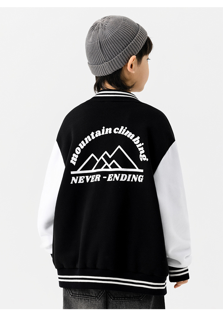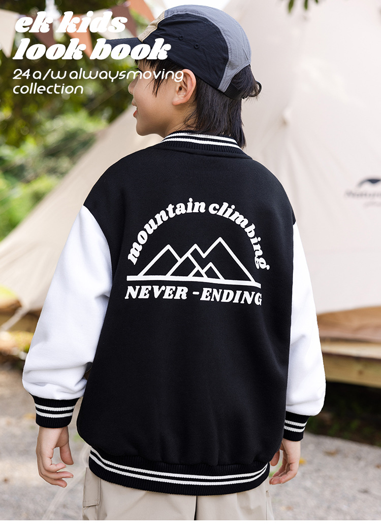 EK 아동복 대학 컬러 블록 소년 루즈 벨벳 재킷, 세련되고 개성 넘치는 중대형 아동 피부 친화적인 탑 야구 유니폼