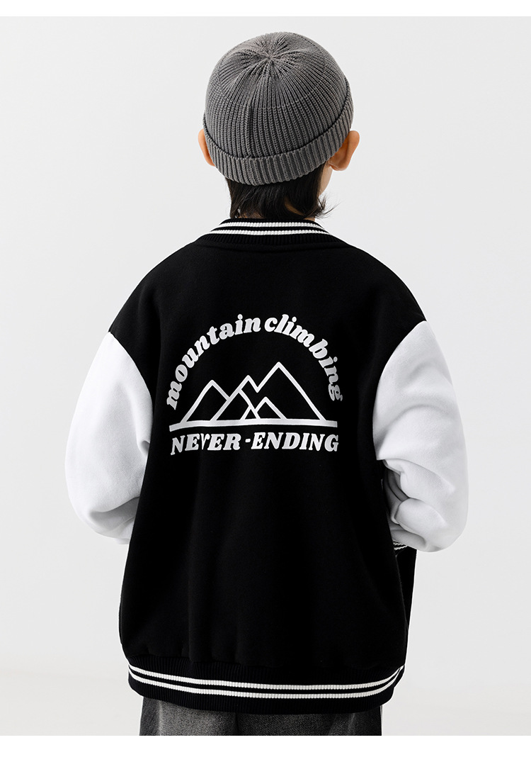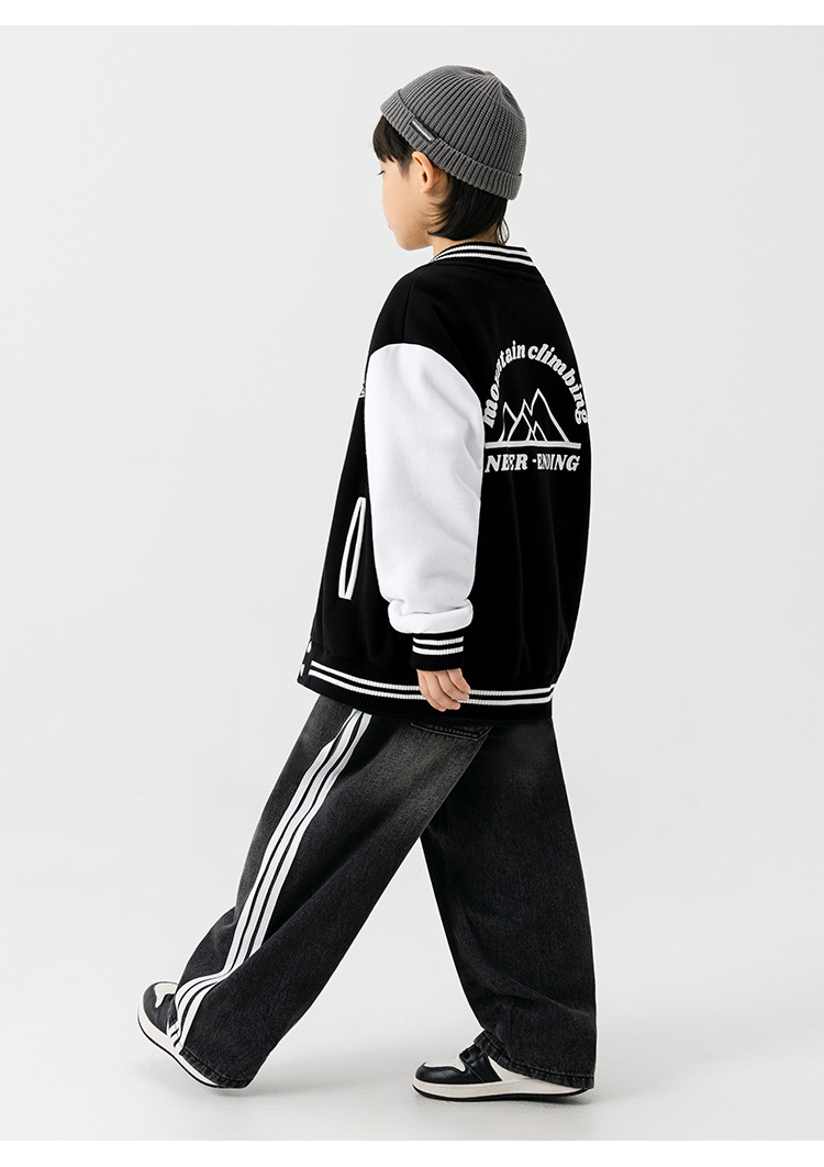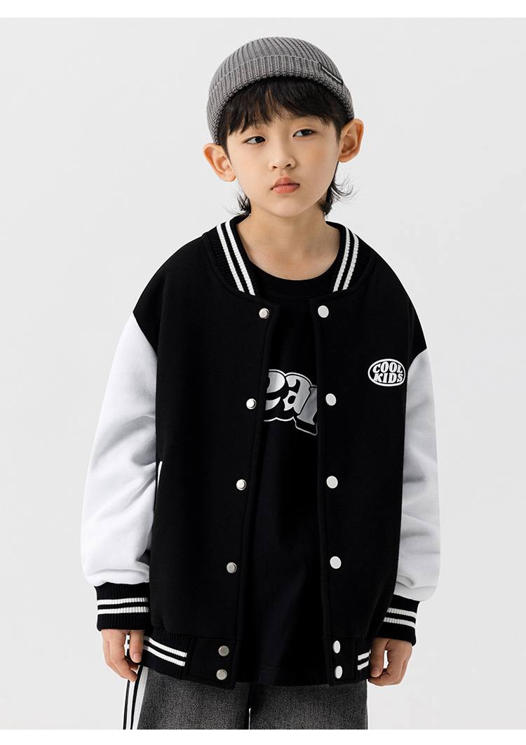 EK 아동복 대학 컬러 블록 소년 루즈 벨벳 재킷, 세련되고 개성 넘치는 중대형 아동 피부 친화적인 탑 야구 유니폼스토어 가기