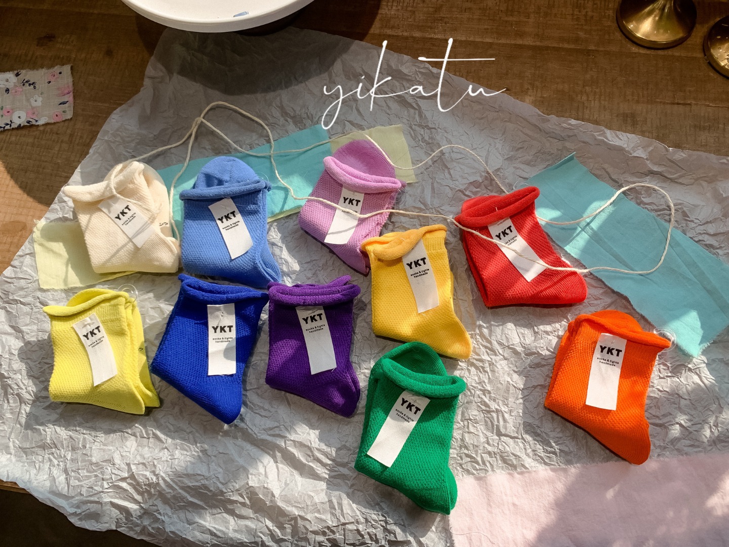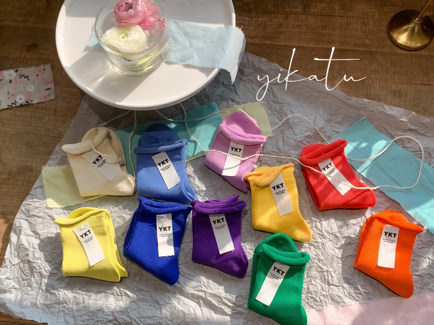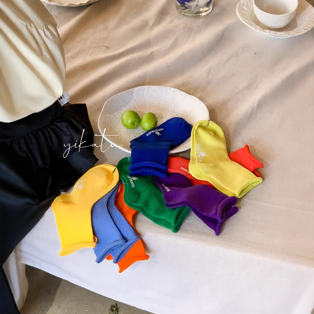 도매 Yikatu yikatu 여름 초박형 느슨한 가장자리 무지개 어린이 양말