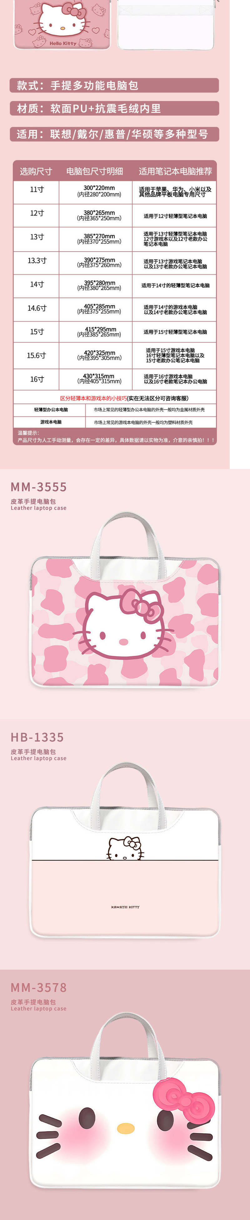 헬로 키티 노트북 가방 레노버 15.6 인치 mac13.3 인치 레노버 작은 새로운 pro16 인치 태블릿 가방스토어 가기